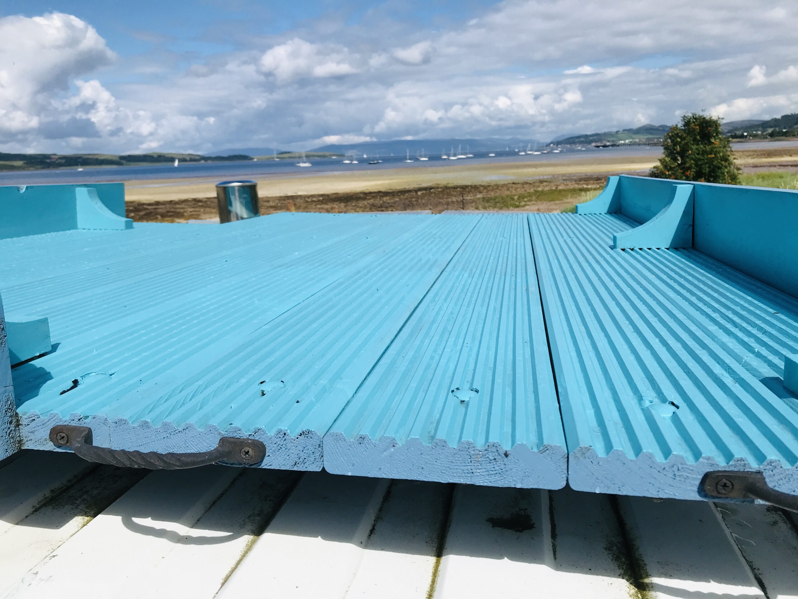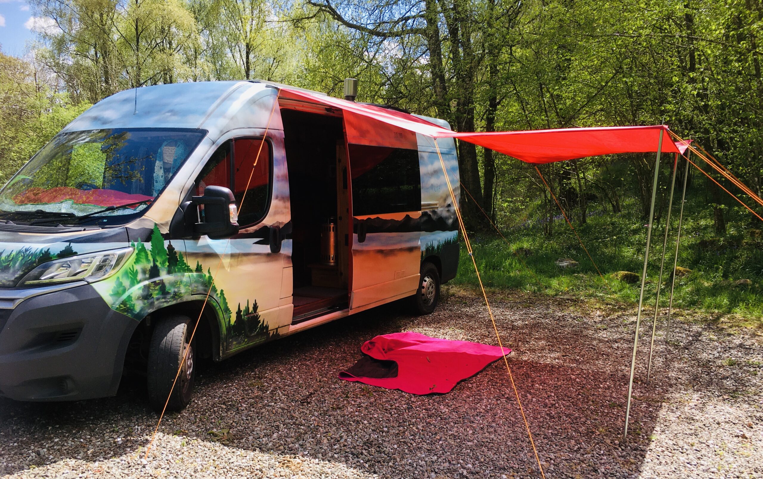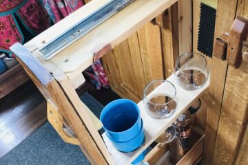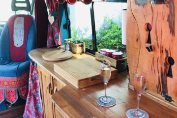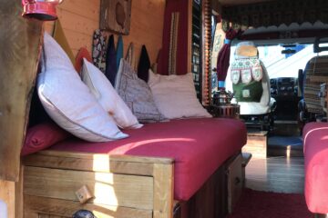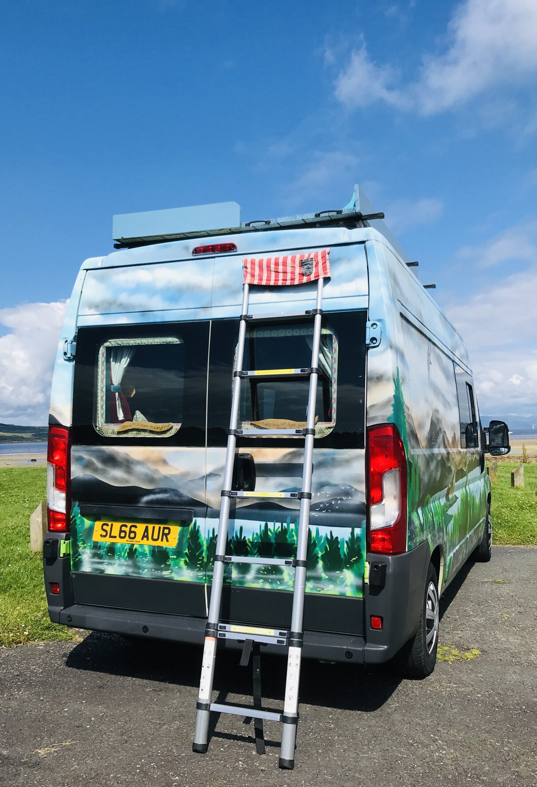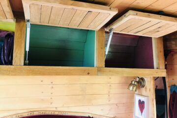 James delighted me by agreeing to add a roof deck after I had been on another at Camp Quirky. The deck is on solid roof bars and accessed by a ladder at the back or can also be accessed at the side door via a ladder. This added feature is so much fun at festivals when you can get up high and see what’s going on but can also be enjoyed just lying on the roof star gazing. I’d advise no alcohol though!