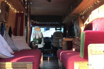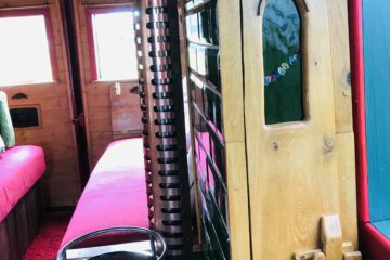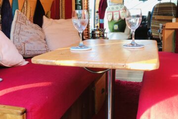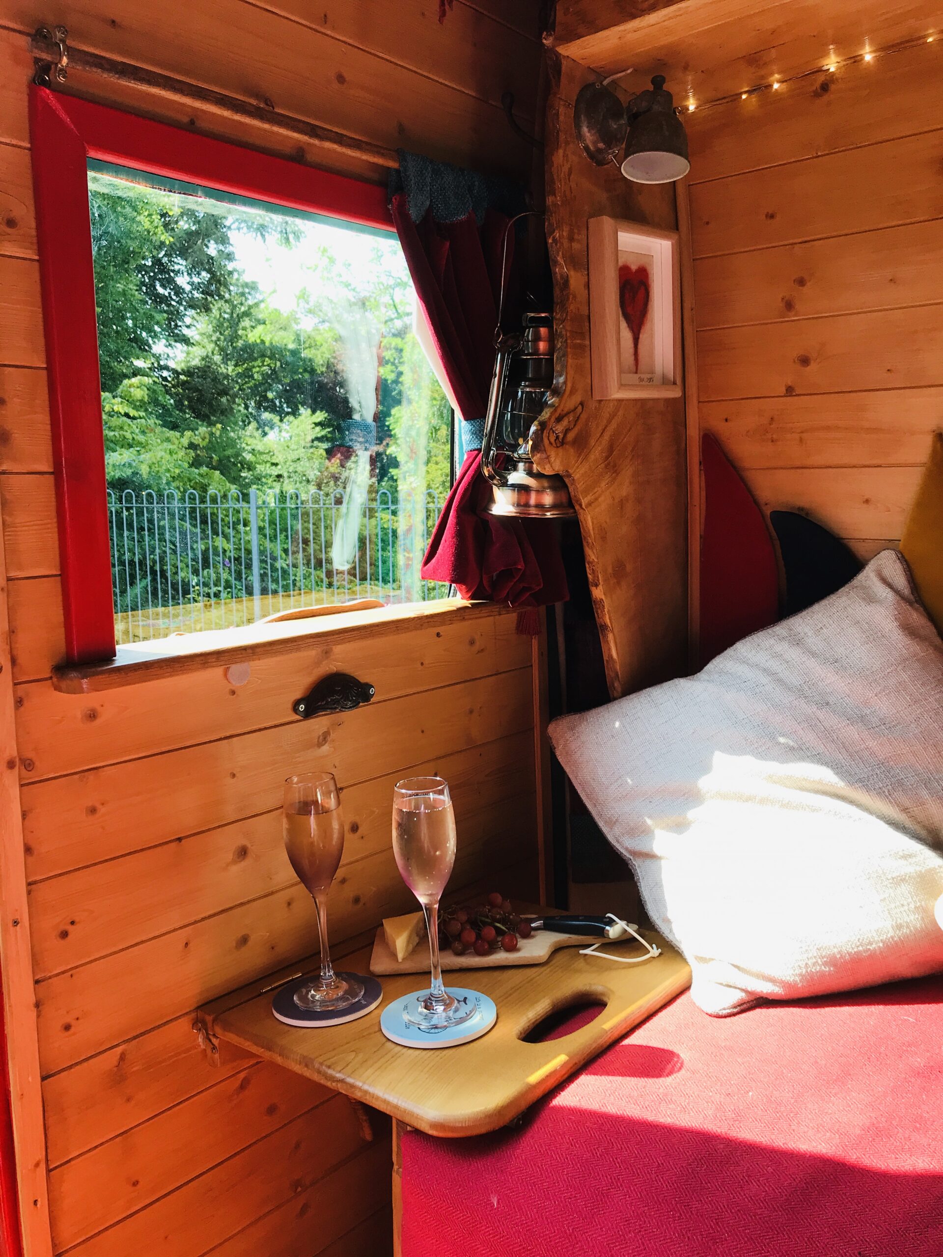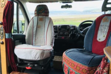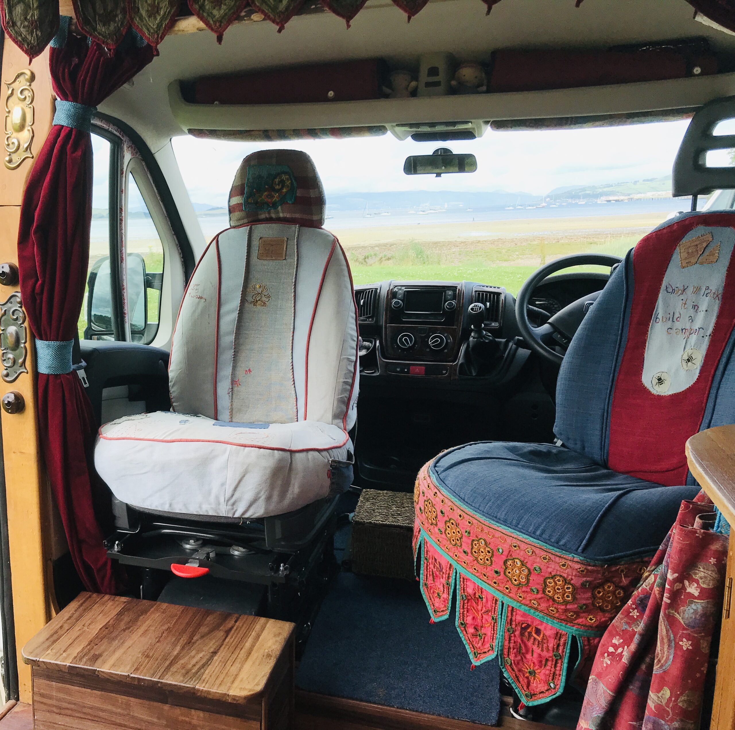 The two captains chairs can swivel to make sure the inside feels very roomy. Both seats have been lovingly upholstered and extra padding added with unique touches by Anita.