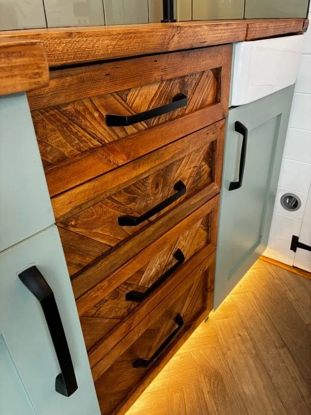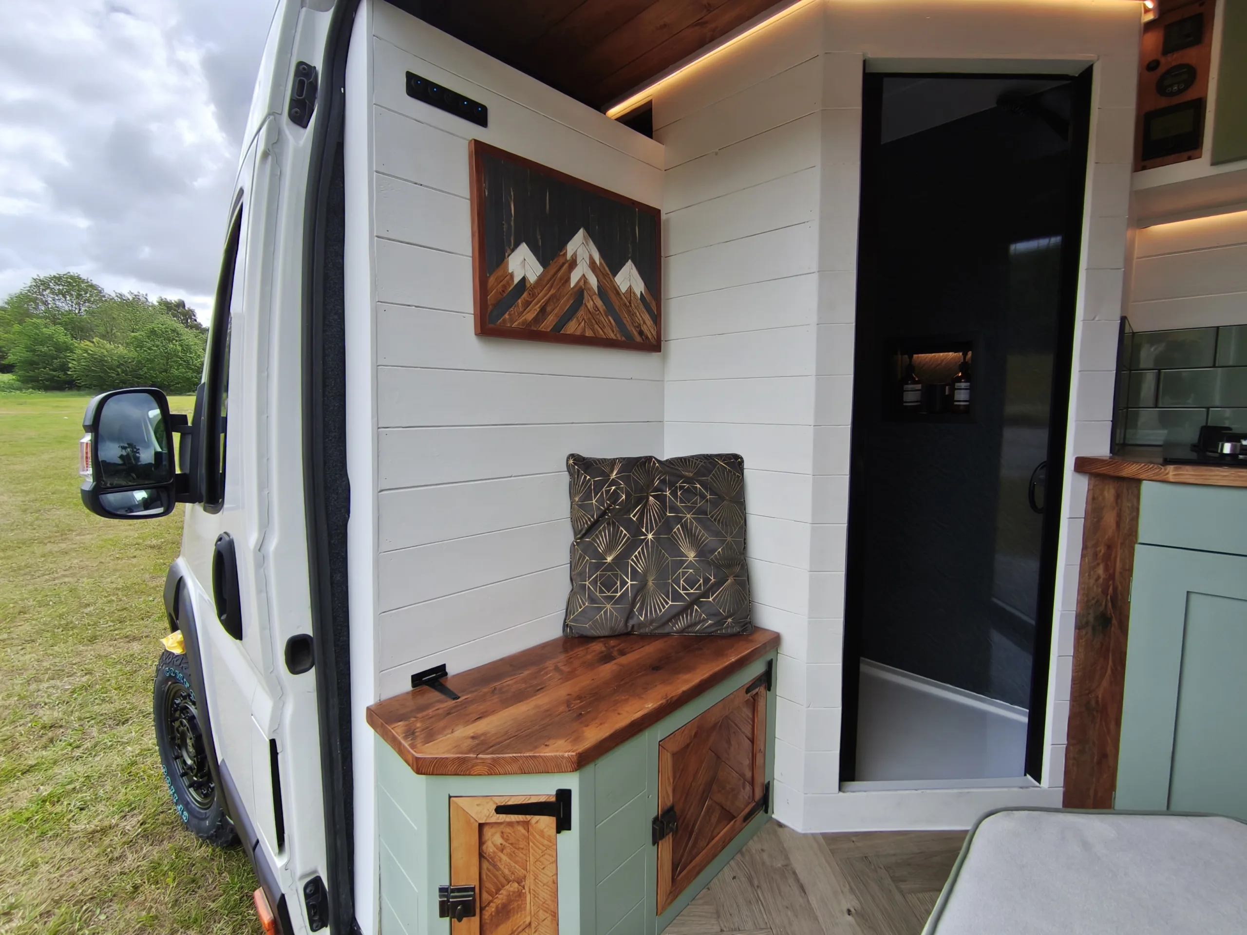 The latest van to roll out of the Reclaim The Road workshop, Olive is a beautifully handcrafted, off-grid home on wheels, fully ready for winter trips and long term living. Built for adventure but designed for comfort, she blends rugged utility with warm, rustic charm. Lightweight, diesel central heating (JP/Truma), large lithium battery, heated power shower, reversing sensors and rear camera.