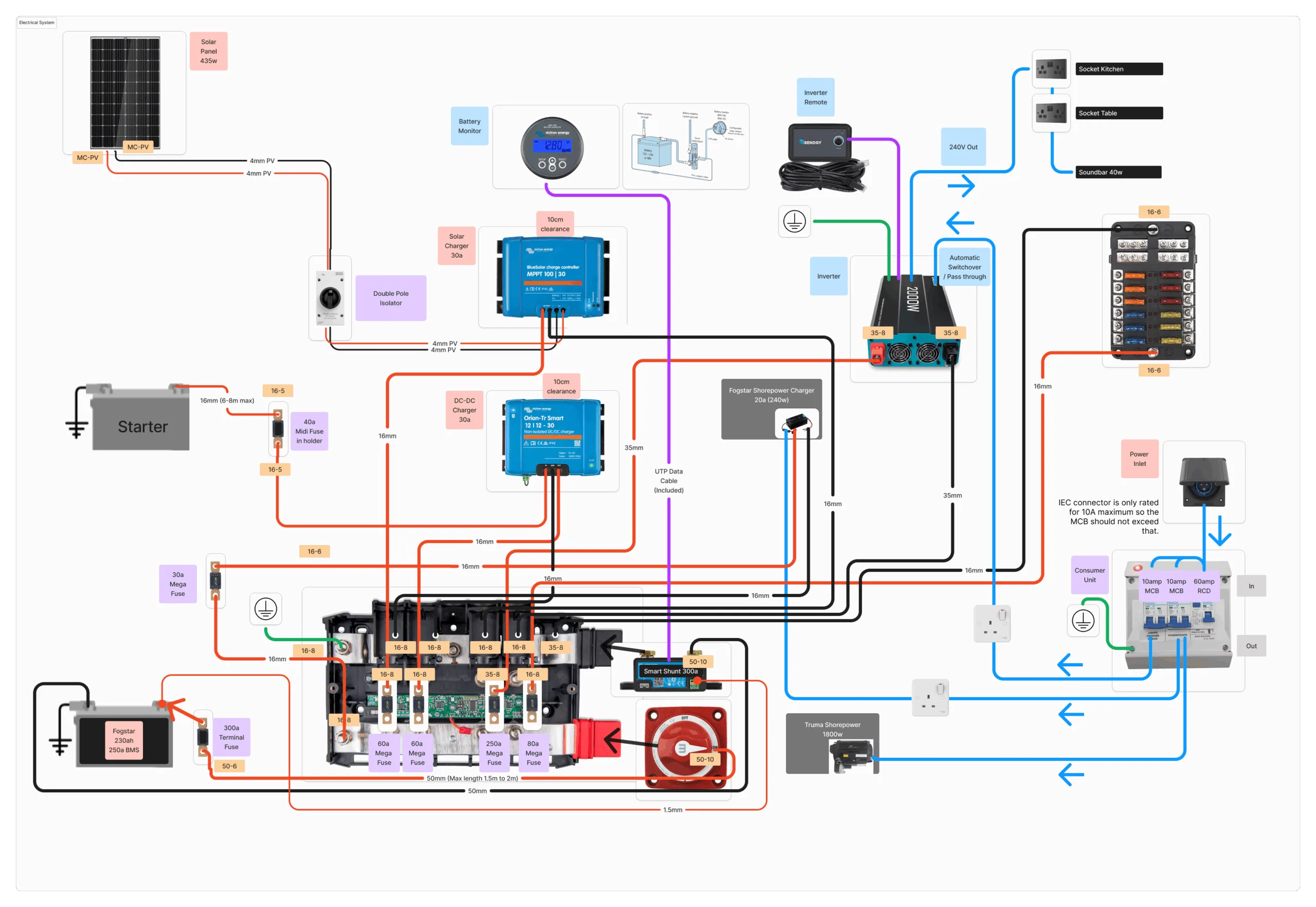 – Victron DC-DC battery charger from alternator (30a) keeping you charged while driving.