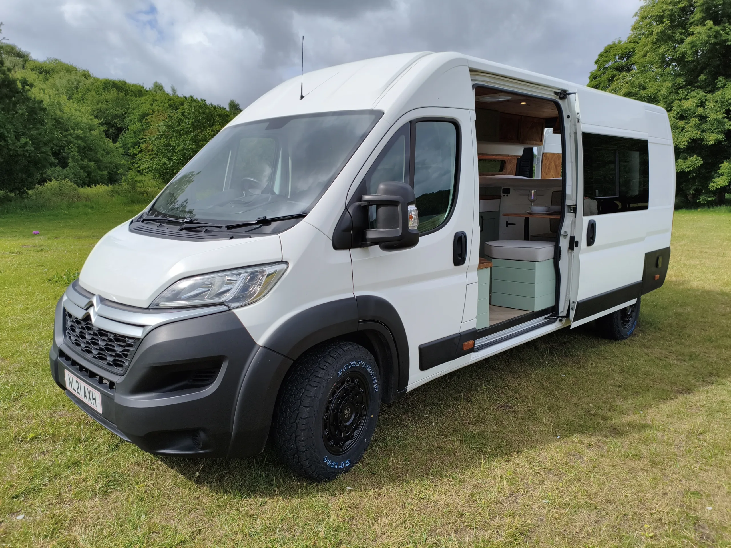 Whether you’re chasing sunsets or parked up in the wild, Olive’s got your back — a solid, professionally converted camper that’s ready for winter.