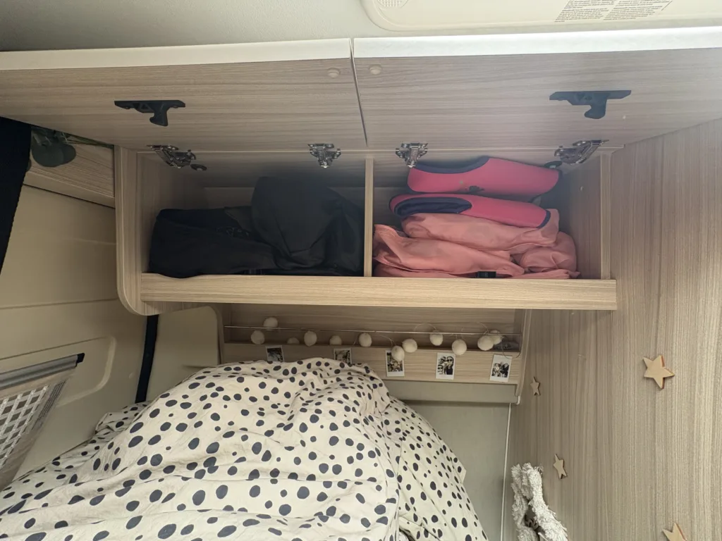 Bunk bed layout at rear with Bultex mattresses – one double / one single – for 3 kids