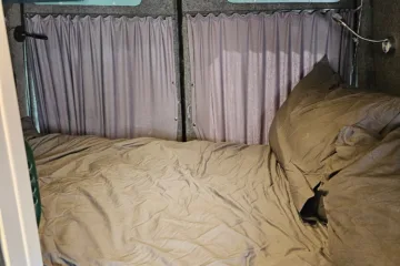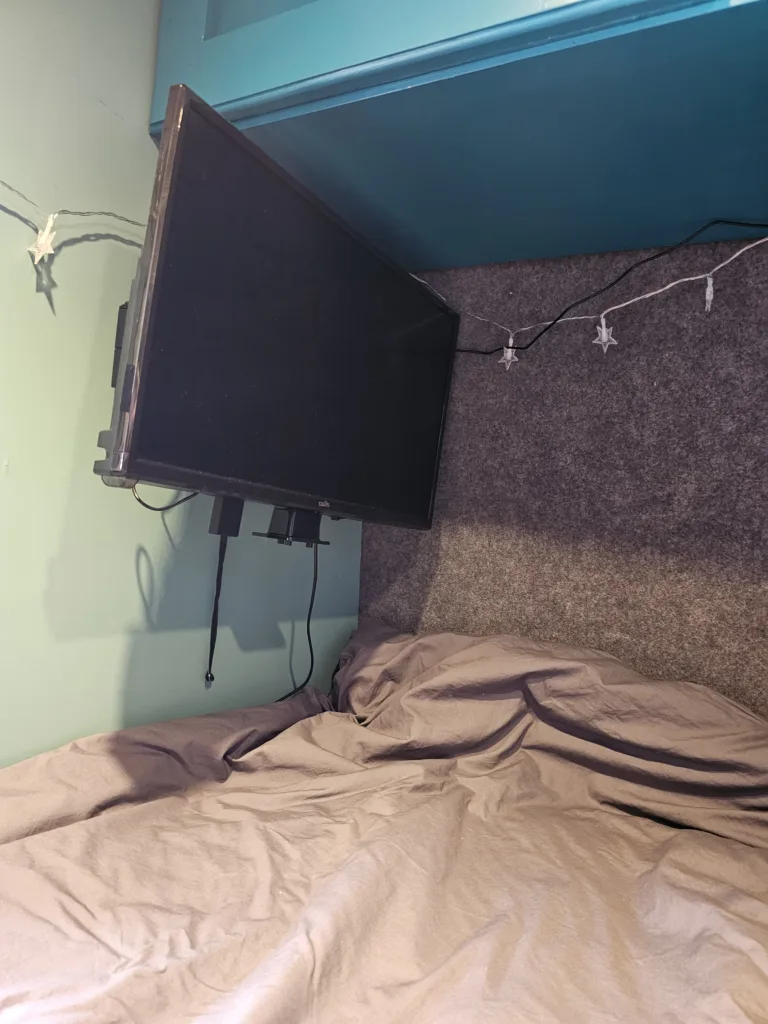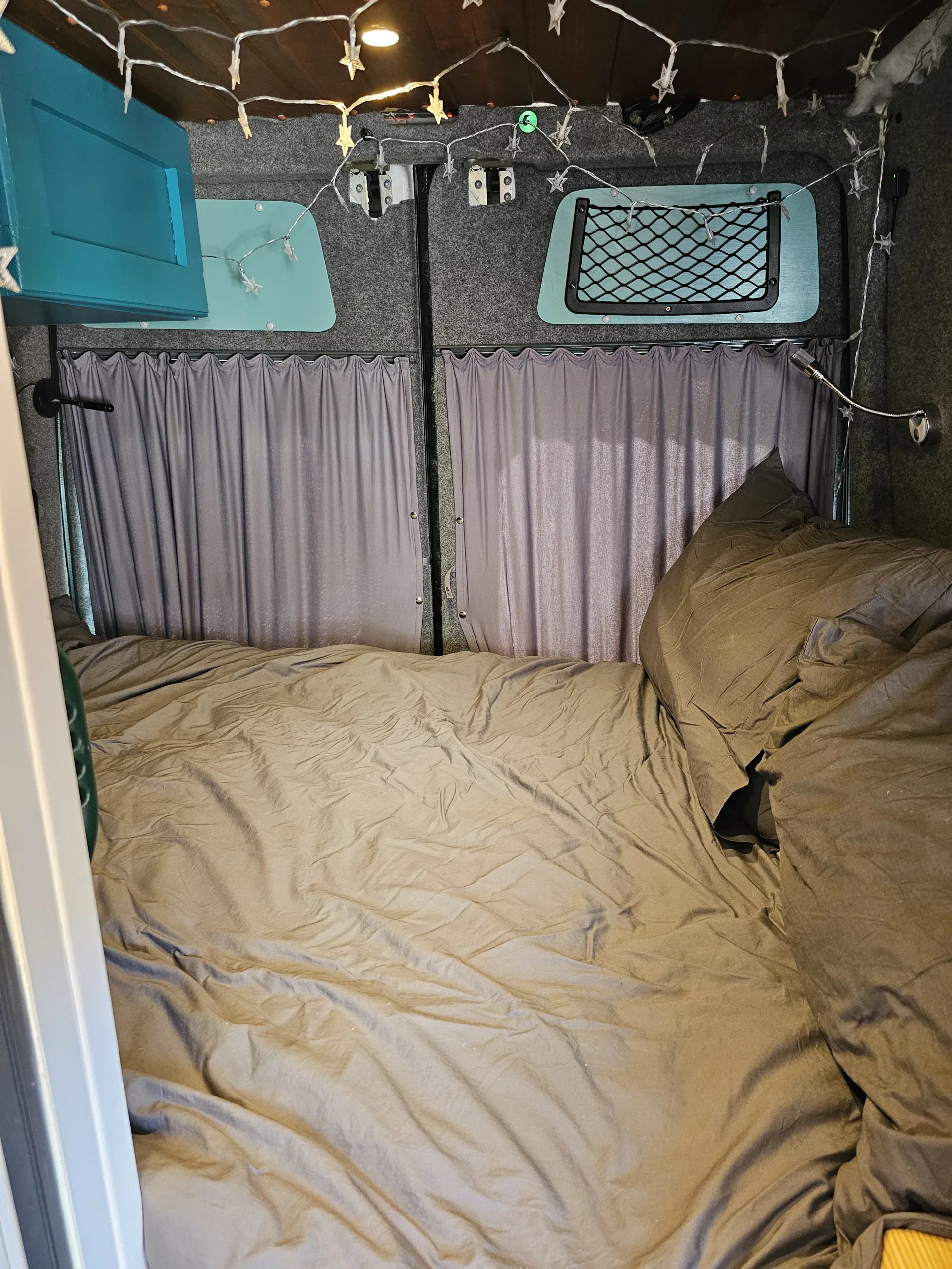Comfortable spacious permanent bed with custom size memory foam mattress.