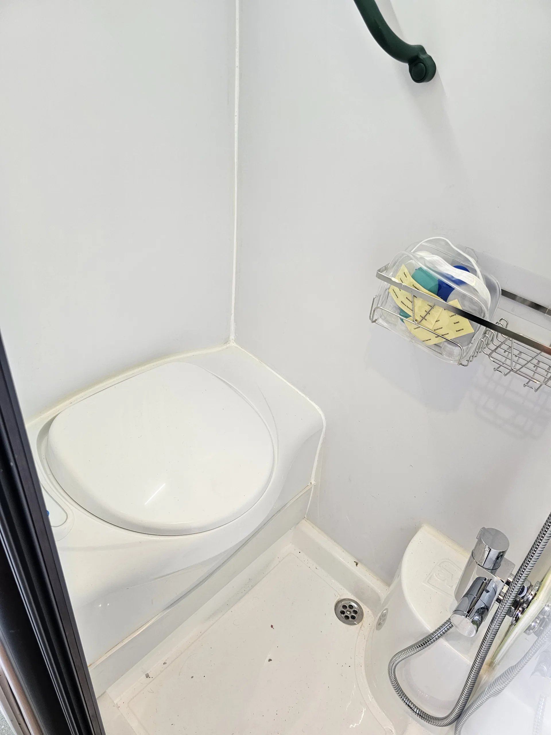 Thetford Cassette C400 series toilet fitted. Never used. This one flushes and is easy to empty.