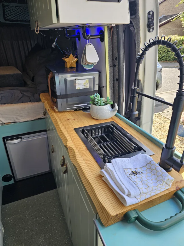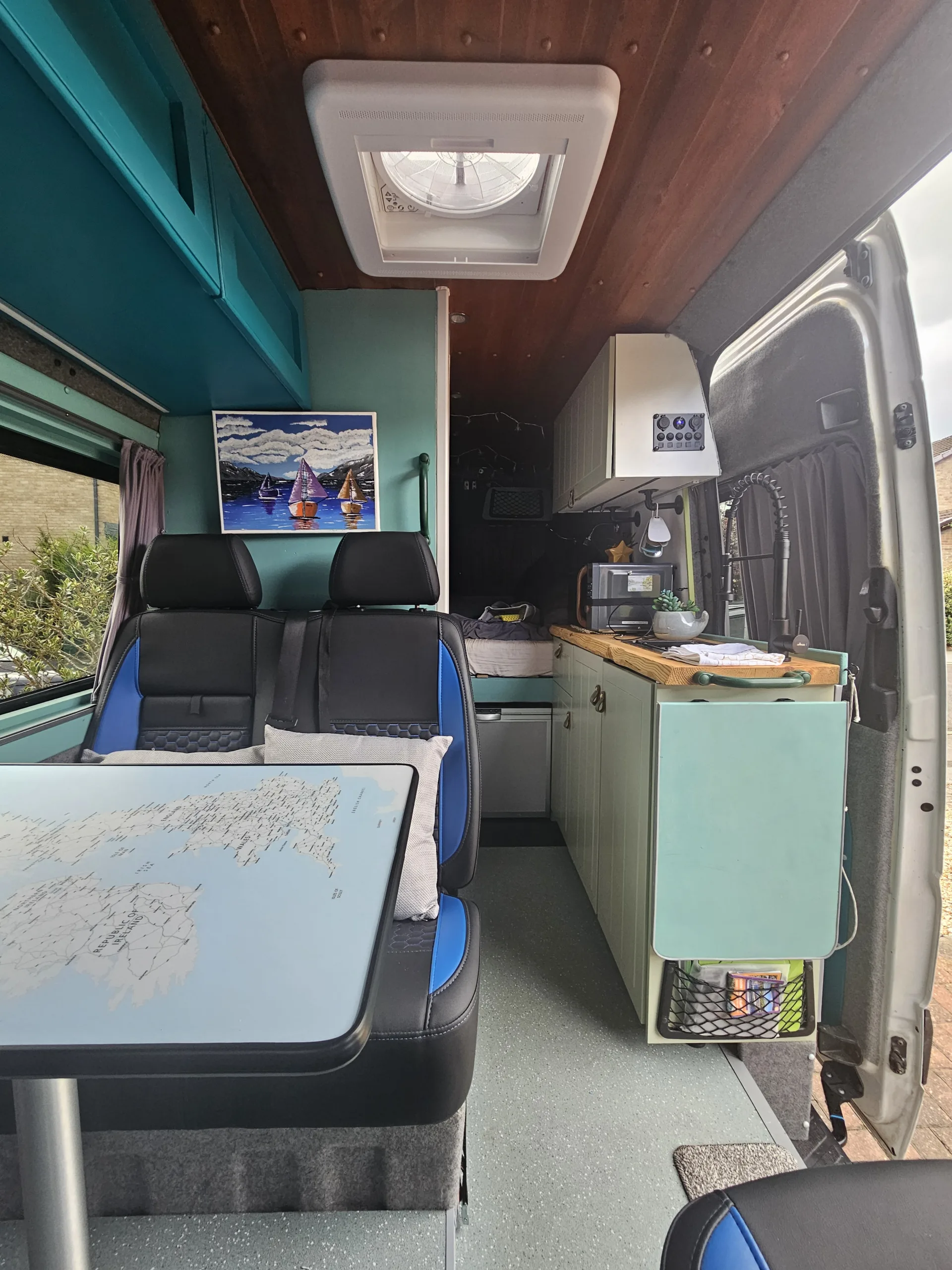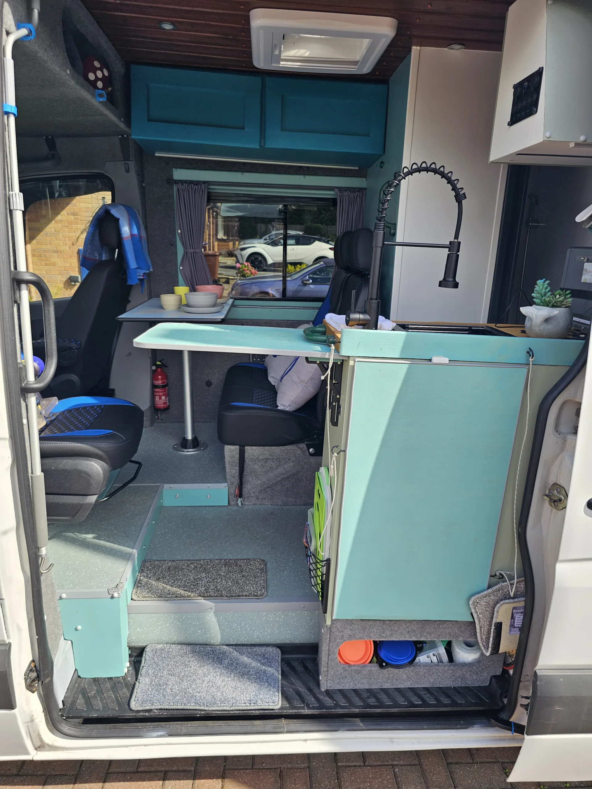Ideal day van, holiday breaks or full time living. Full hot water throughout with flushable toilet.