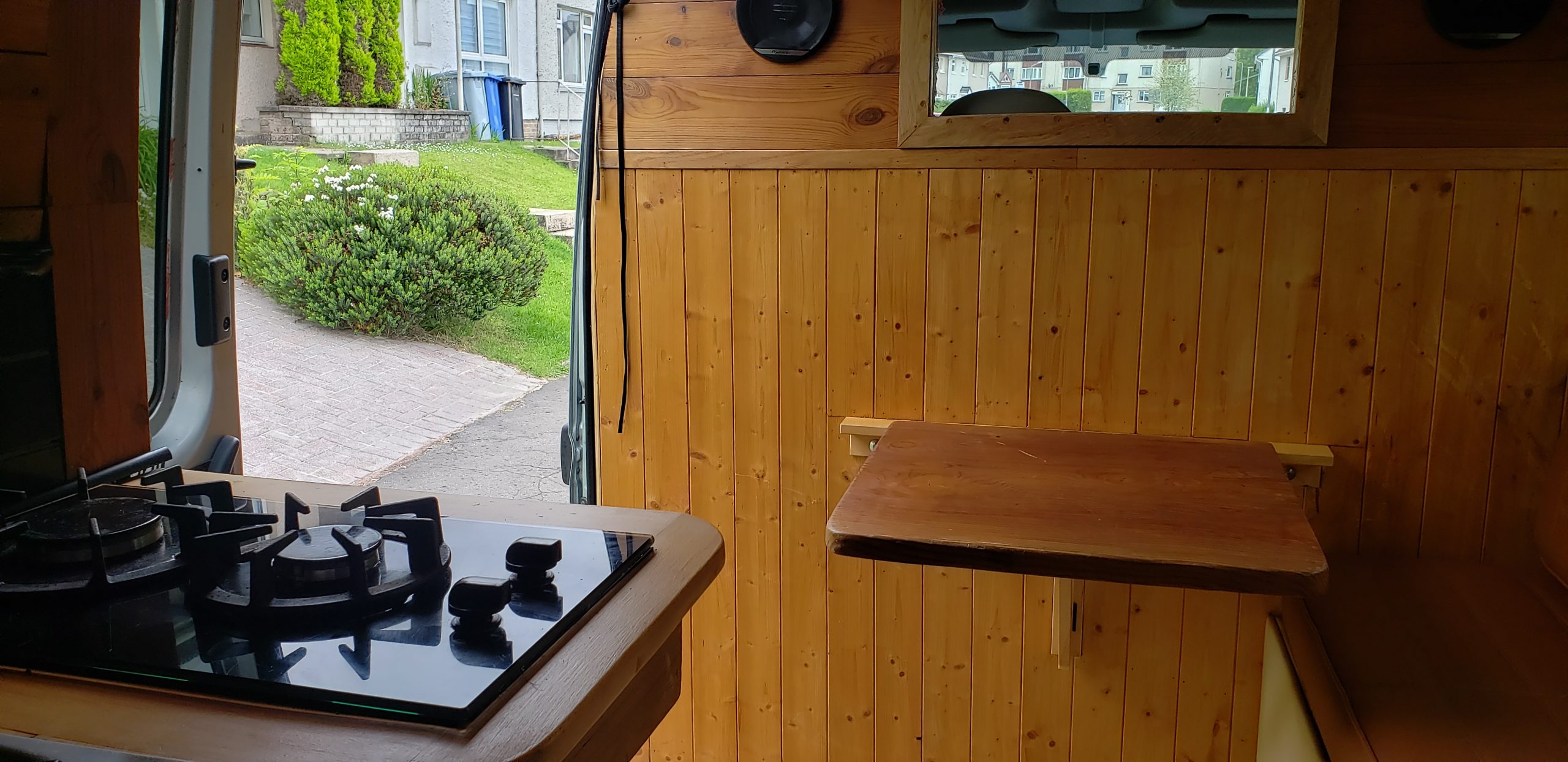 Also, had gas copper piped from the rear of the van into the 2 ring gas hob by van conversion person