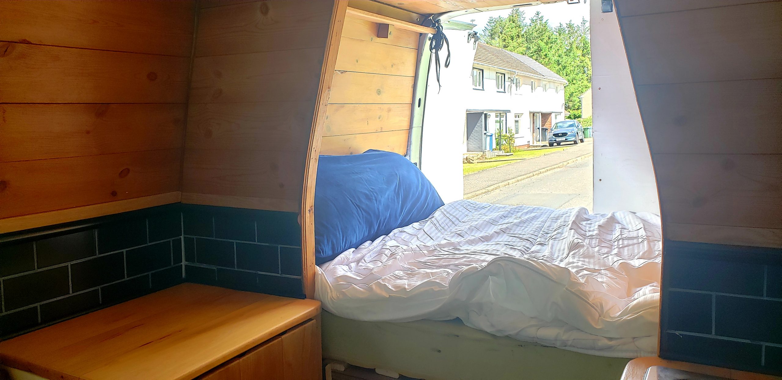 Fixed Double Bed at rear can sleep width of van at 1.9m OR facing other way as length of van, as it has an extension for mattress to accommodate taller people
