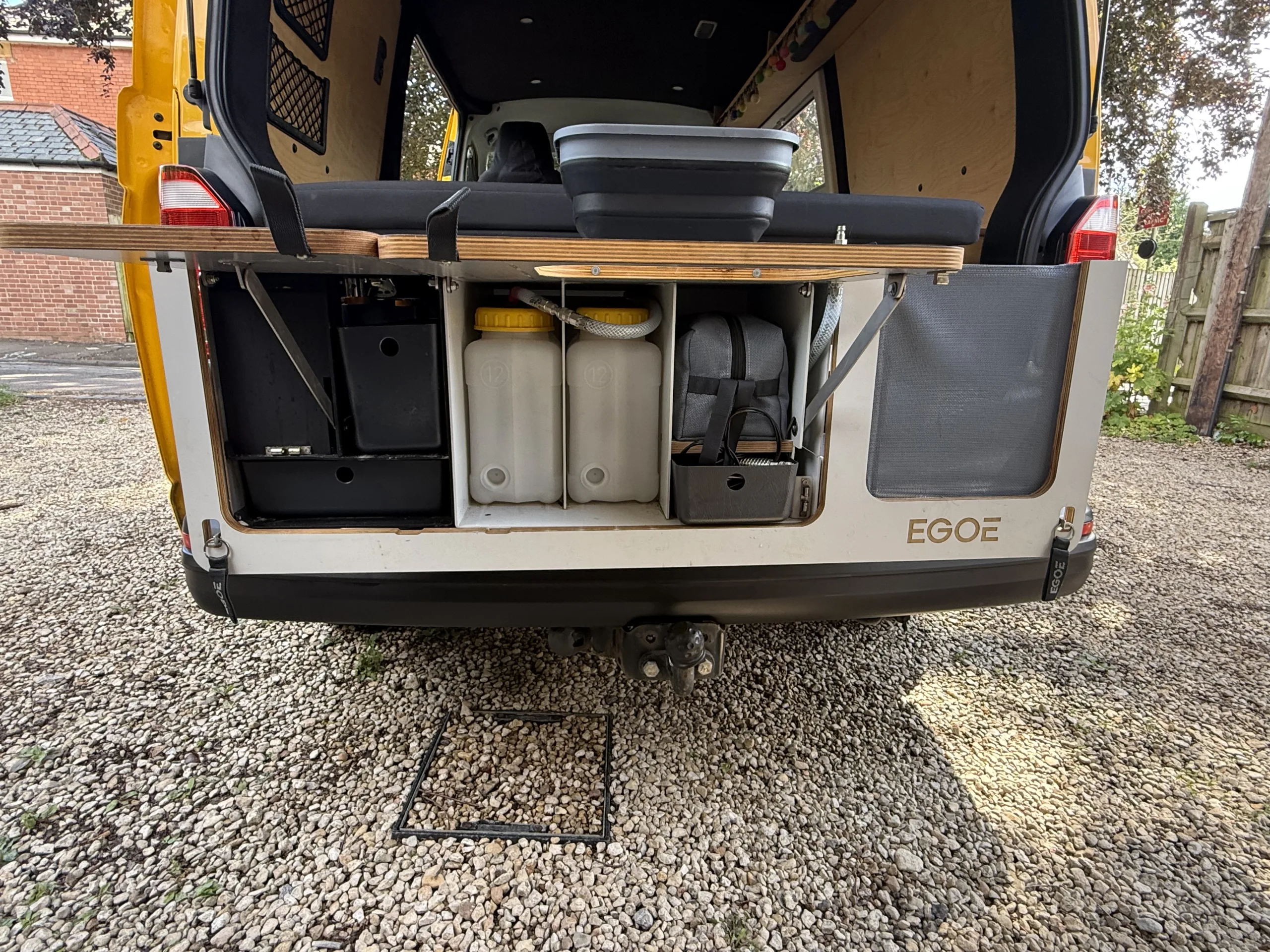 – Egoe Hiker including double hob, twin bottled water system, 12V powered tap, and shower head with storage