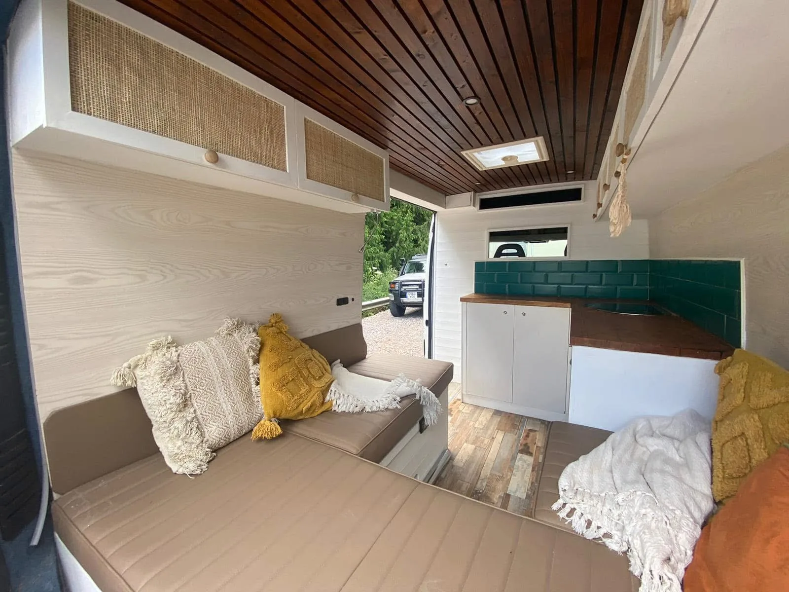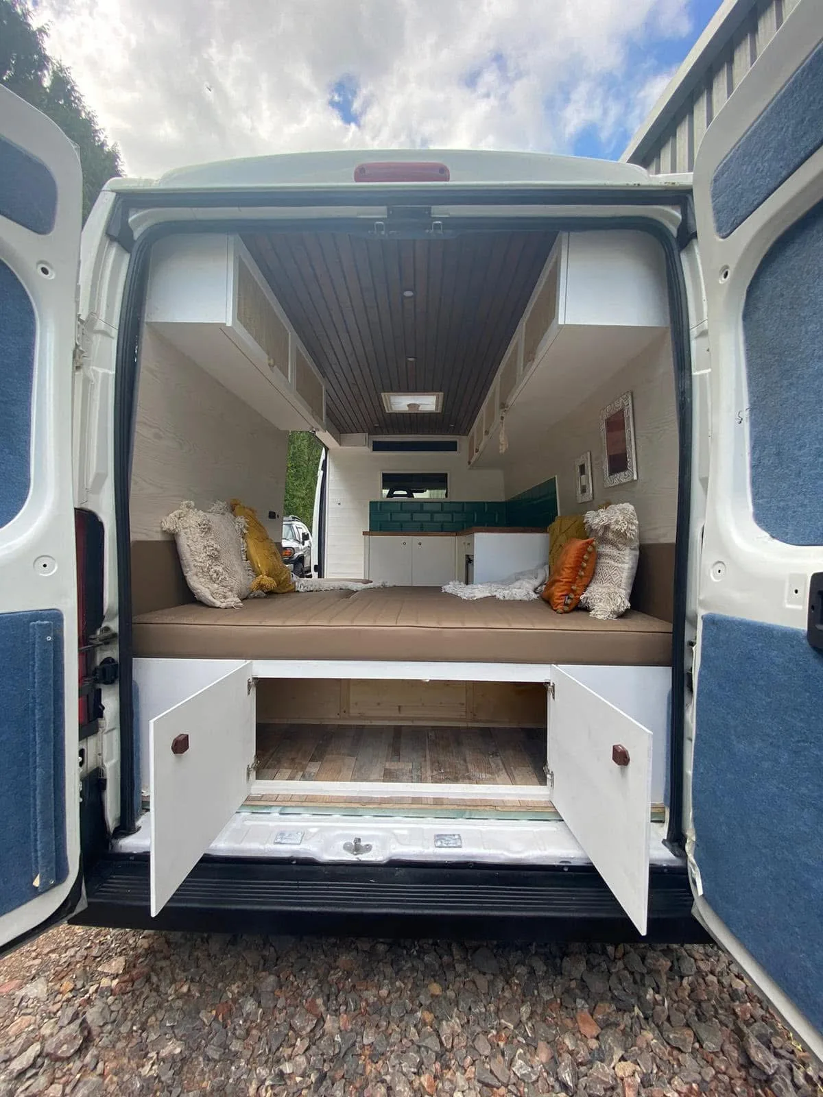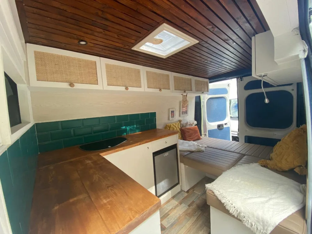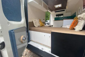 lovely van , drives very well , properly insulated , lined , converted , has clever u shape seating area with drop down table that converts the seating area to a double bed. plenty of storage space under units. the cab is clean and presentable , and you can feel that it hasn’t been to the moon and back like a lot of other vans. i bought the mwb , as its much more parking friendly , and fits in most places that a car would , without any hassle.