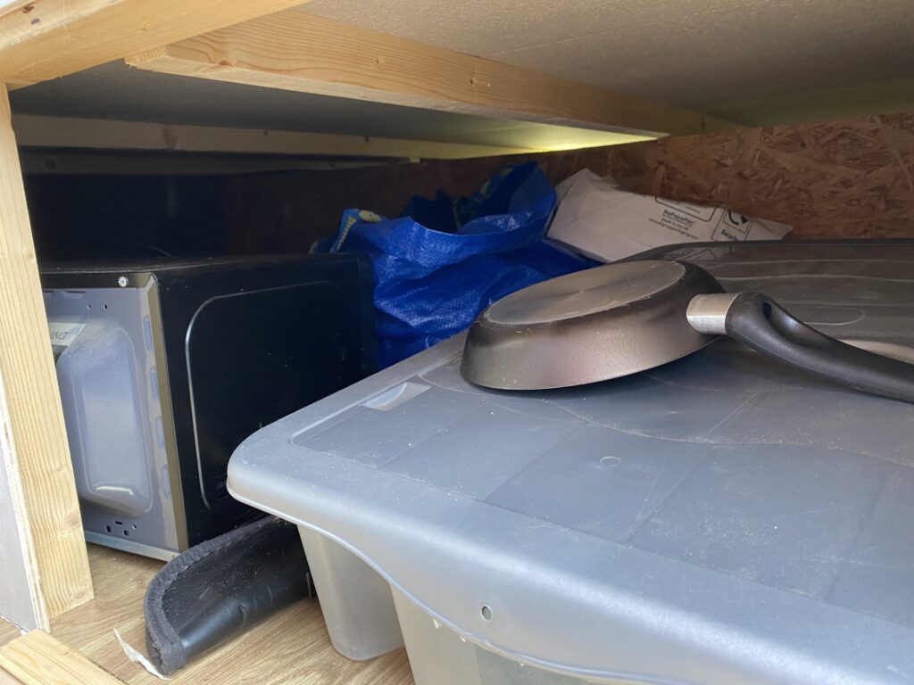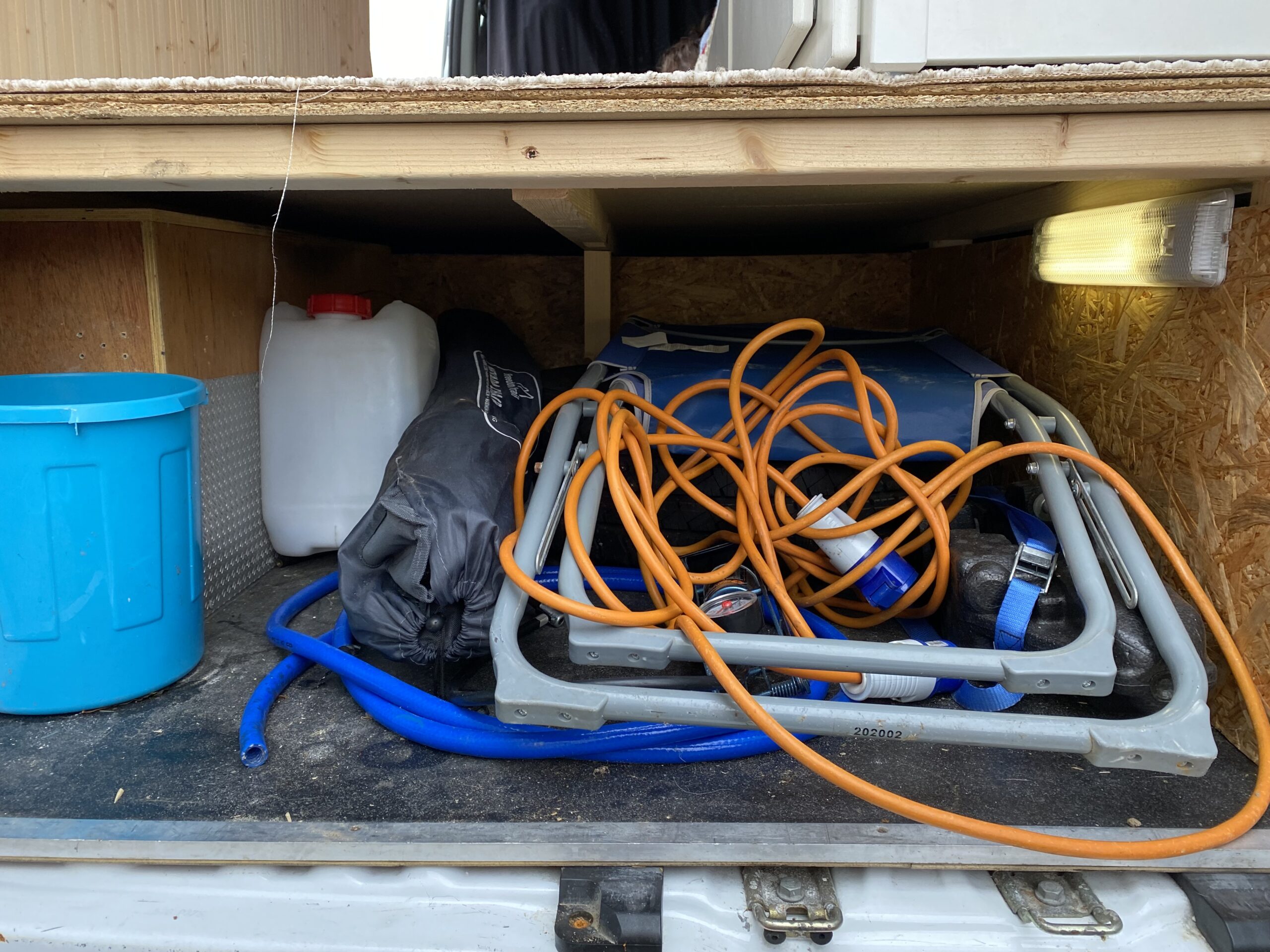 – Garage at the back storing full-sized spare wheel and electrics