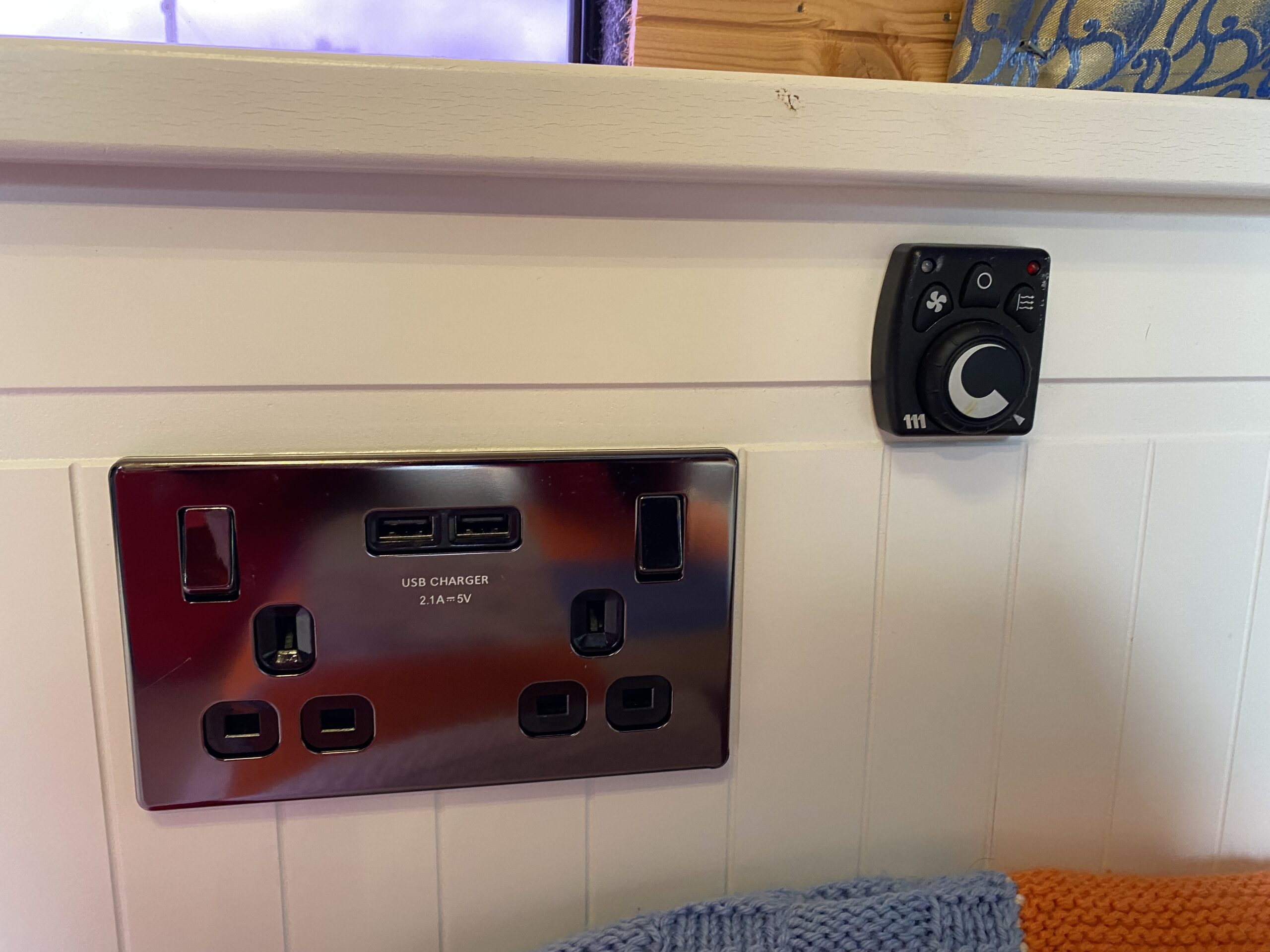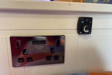 – 240V shoreline through RCD (powering battery charger, fridge, sockets including USB)