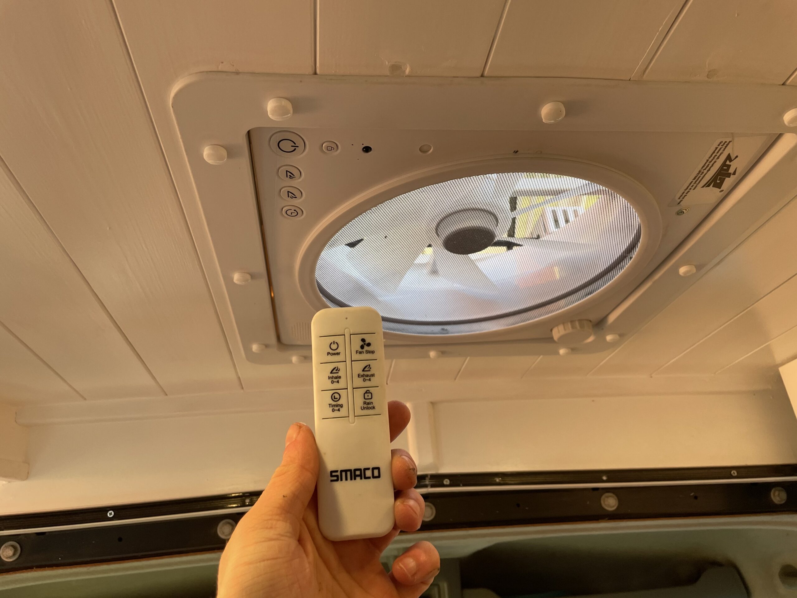 Remote controlled Roof fan, very quiet and efficient , also has a rain sensor so no worries about forgetting it’s open!
