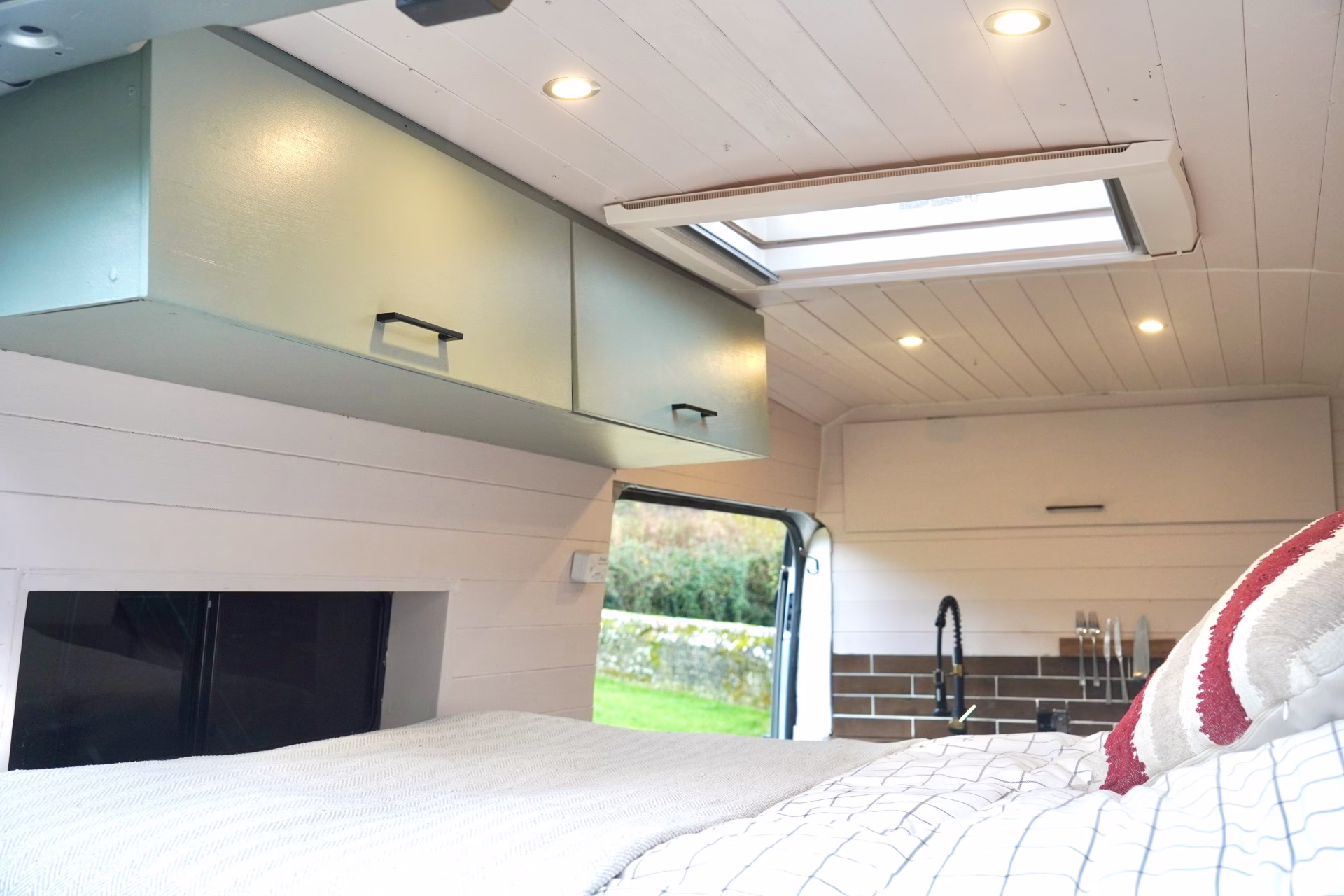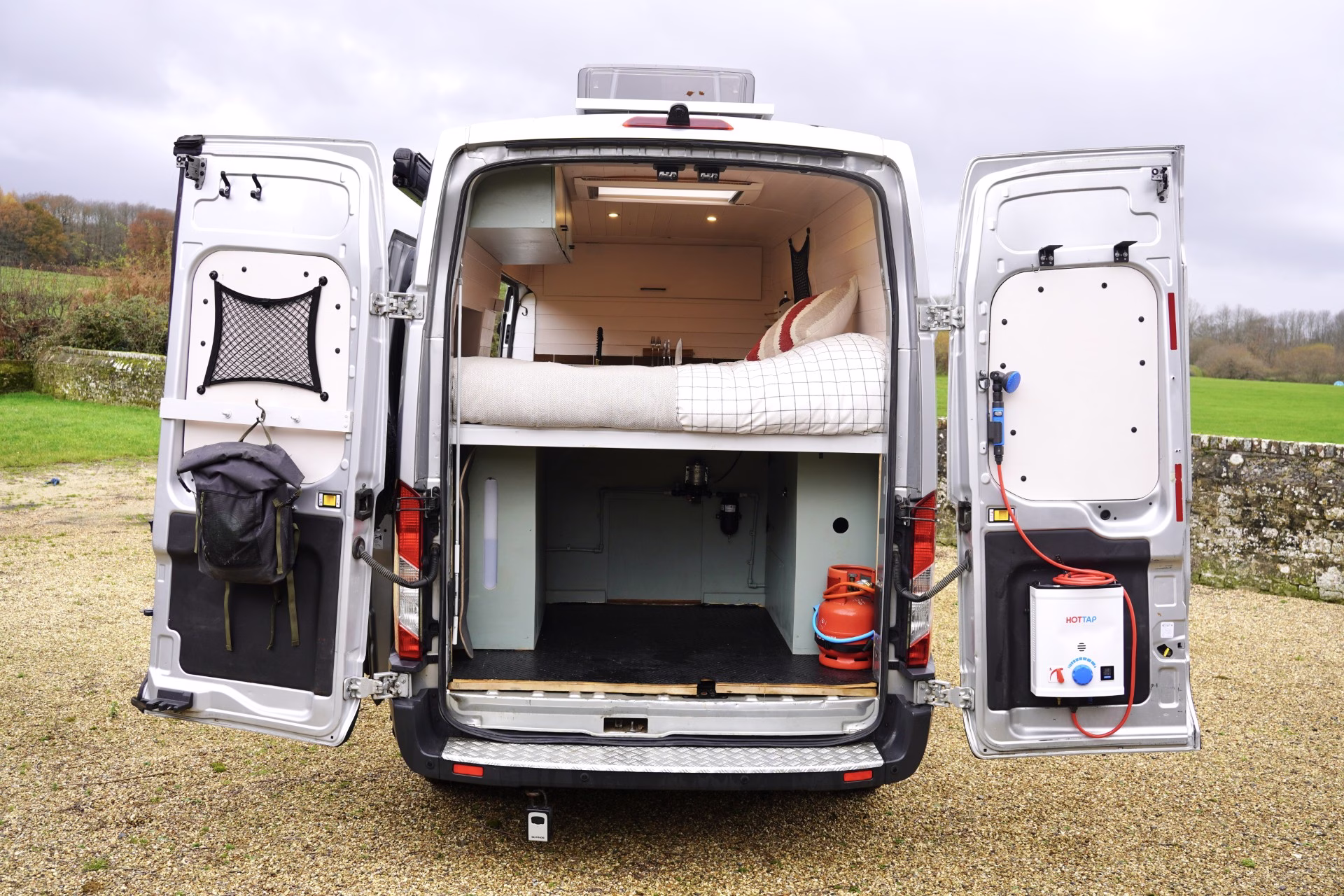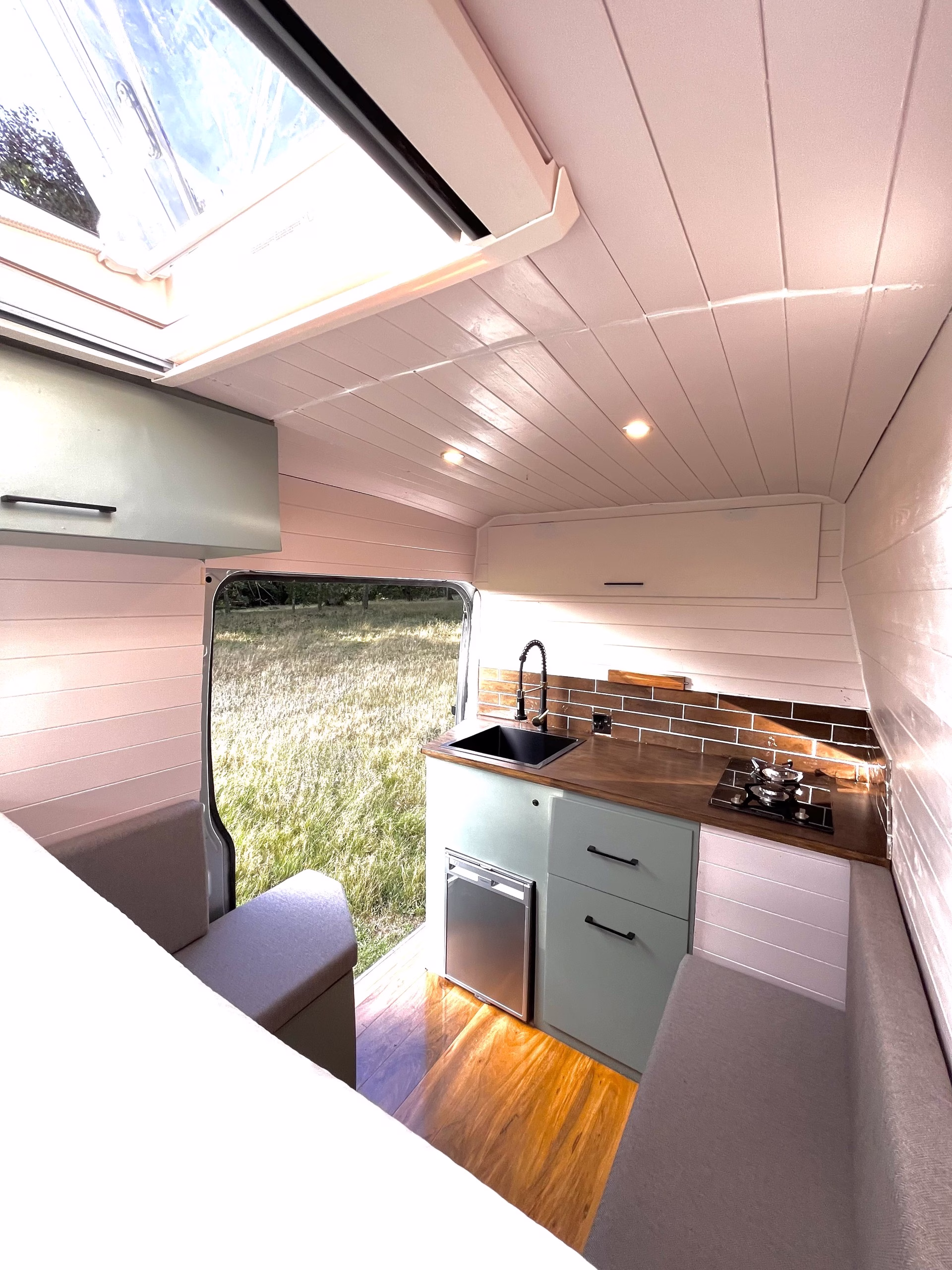 Here for sale is our latest Campervan conversion! The main focus when designing this conversion was to build a functional and practical van for nomads looking to take themselves fully Off Grid to explore new adventures. We have done this by installing a larger water tank and allowing all appliances to be capable to run off solar and the split chargers capabilities. By not overcrowding the space with many features and sticking to neutral colour we have kept it feeling spacious inside. By positioning the bed higher we have allowed for a larger garage space underneath which can cater for large amounts of equipment, such as bikes! We have also added the ability for the bench seats to switch into a great sized single bed!