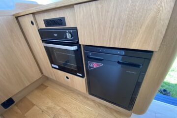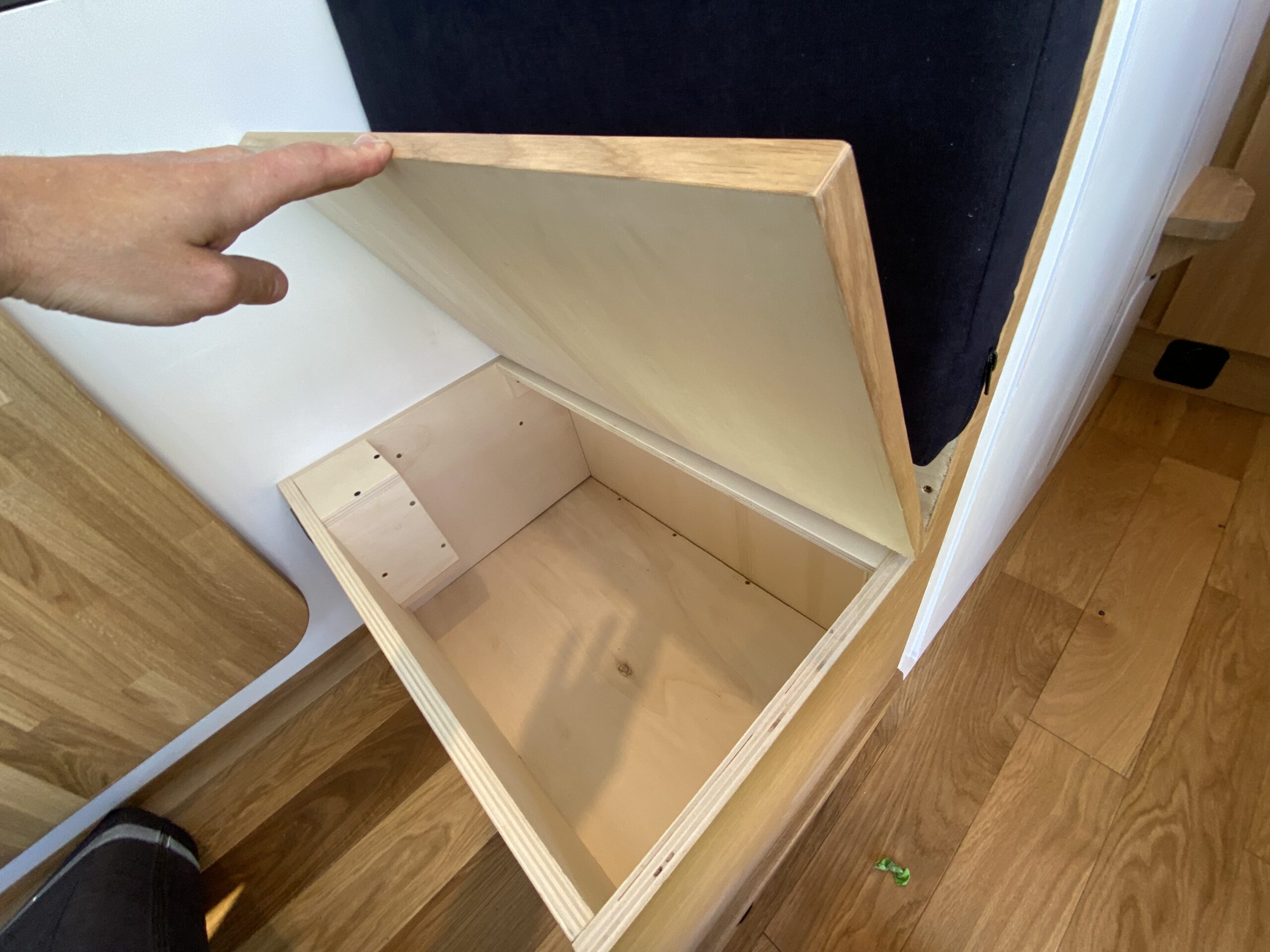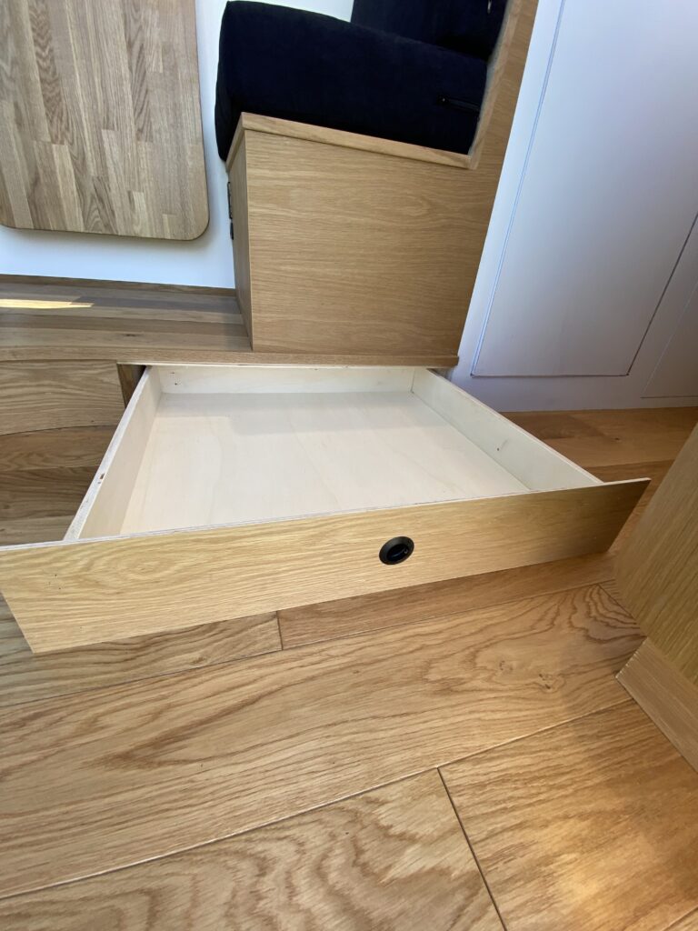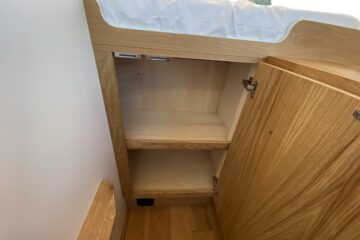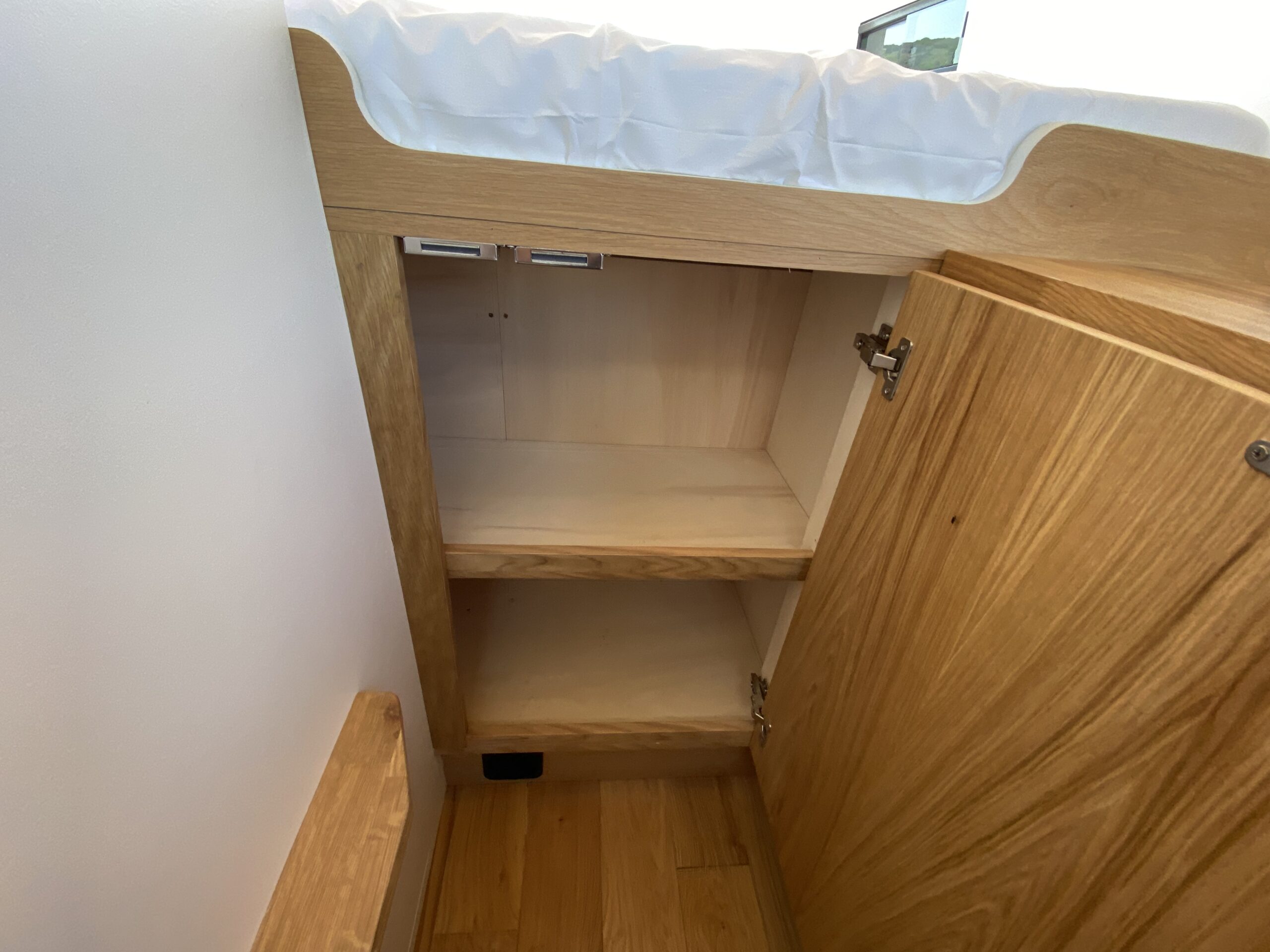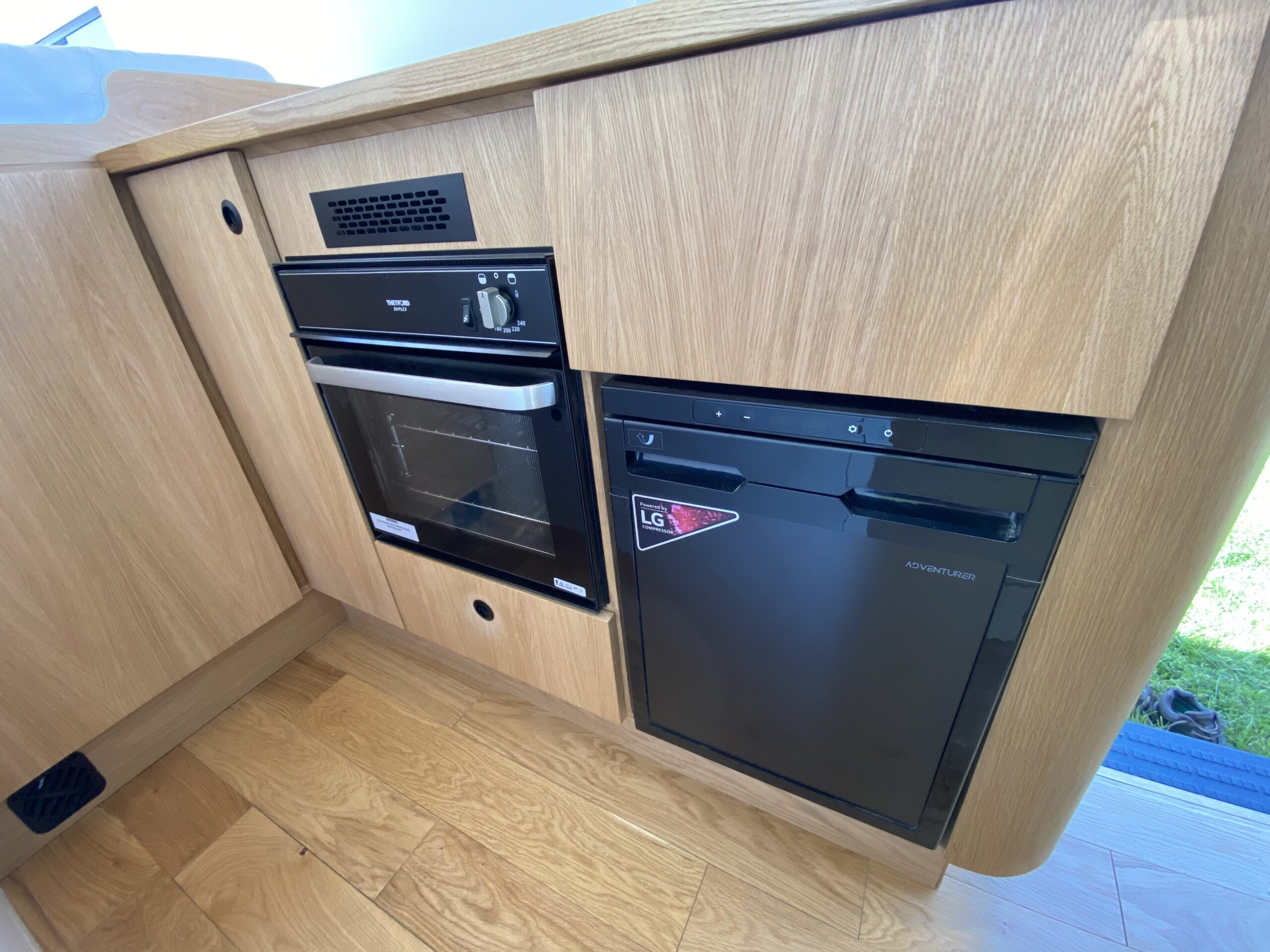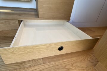 Interior constructed using lightweight poplar plywood and oak veneers, trimmed with solid oak finish.