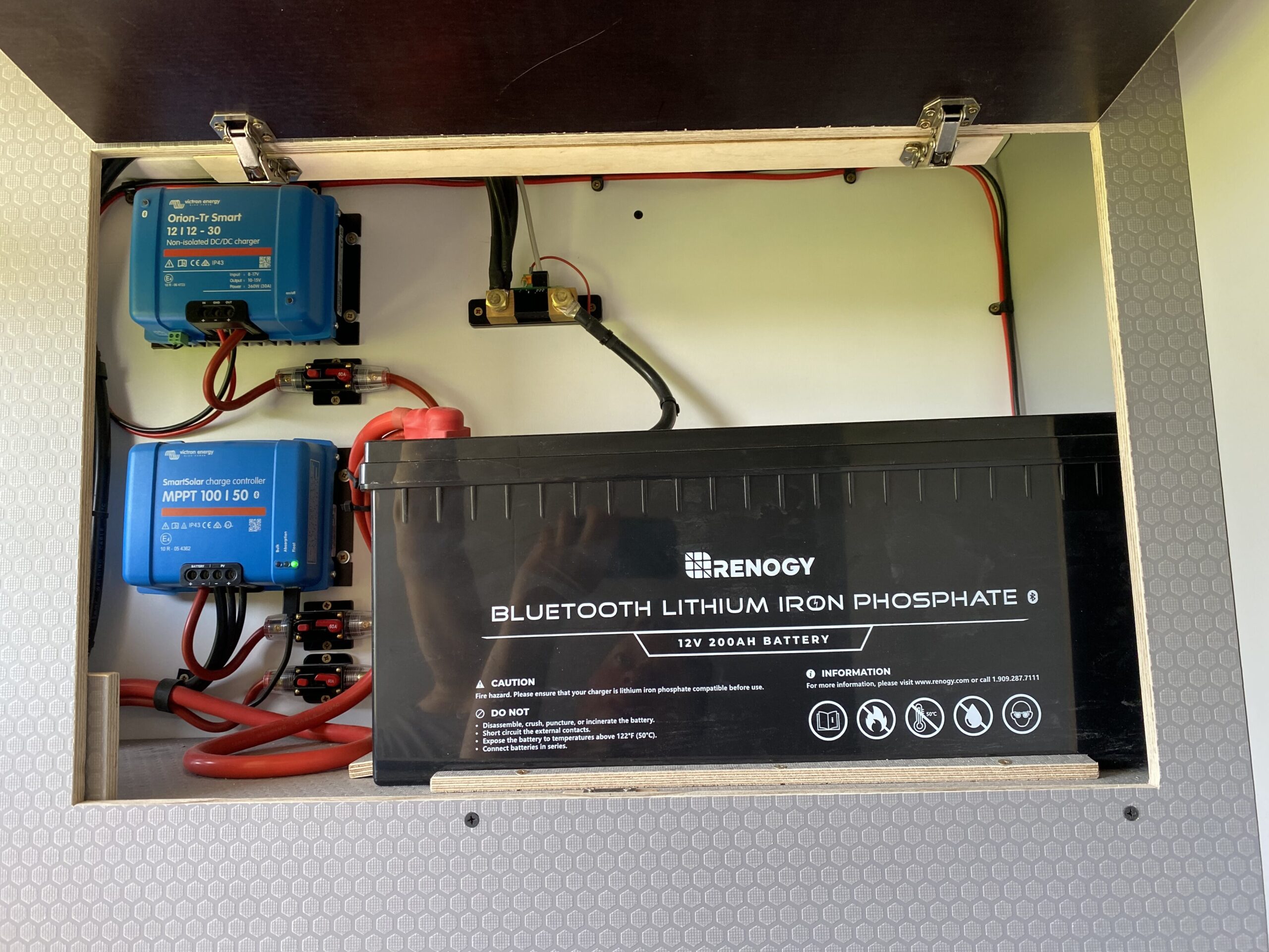 Victron Orion DC/DC Smart Charger. (charges Lithium leisure battery while driving)