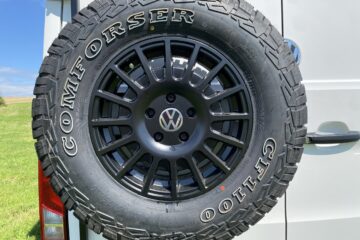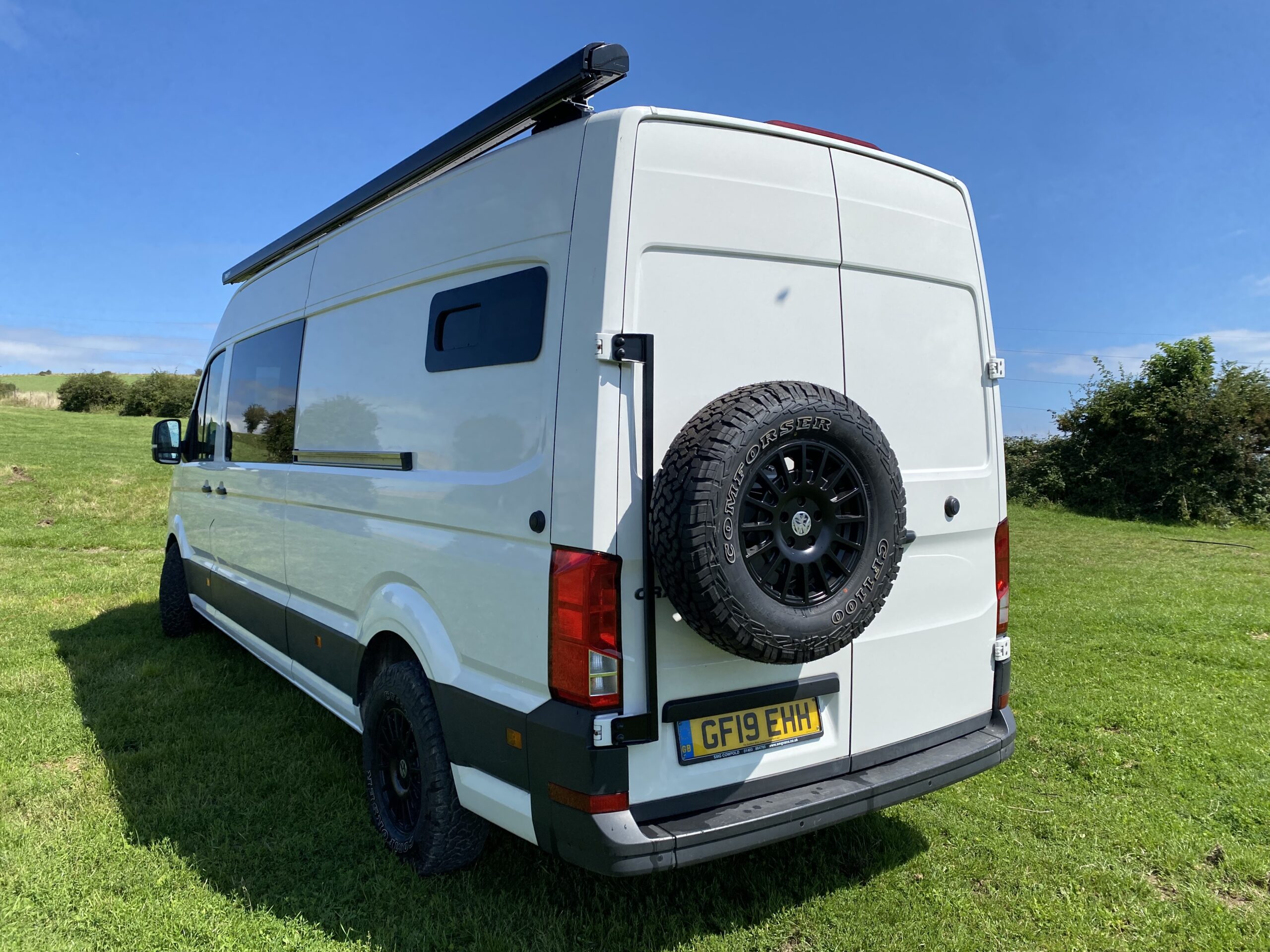 Alloy wheels with all terrain tyres (with spare and rear carrier).