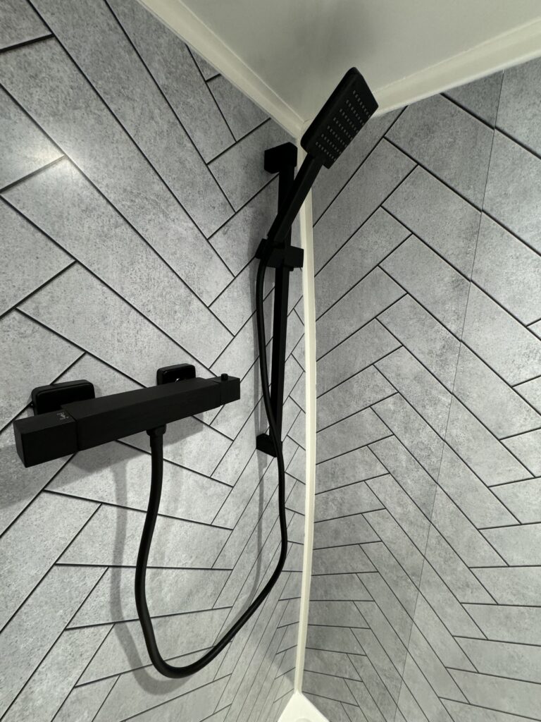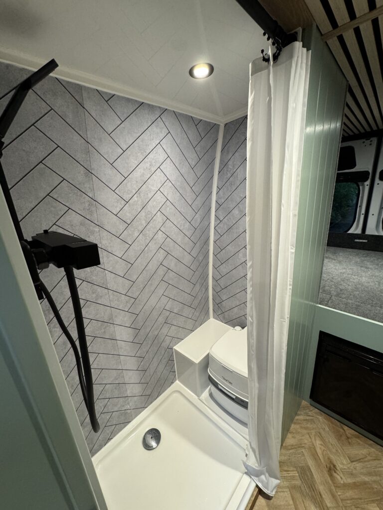 The van comes equipped with fully functioning shower room with hot and cold water. We have fitted a Carrick Matt Black Square Thermostatic Bar Shower Set, along with a Thetford Porta Potti 365.