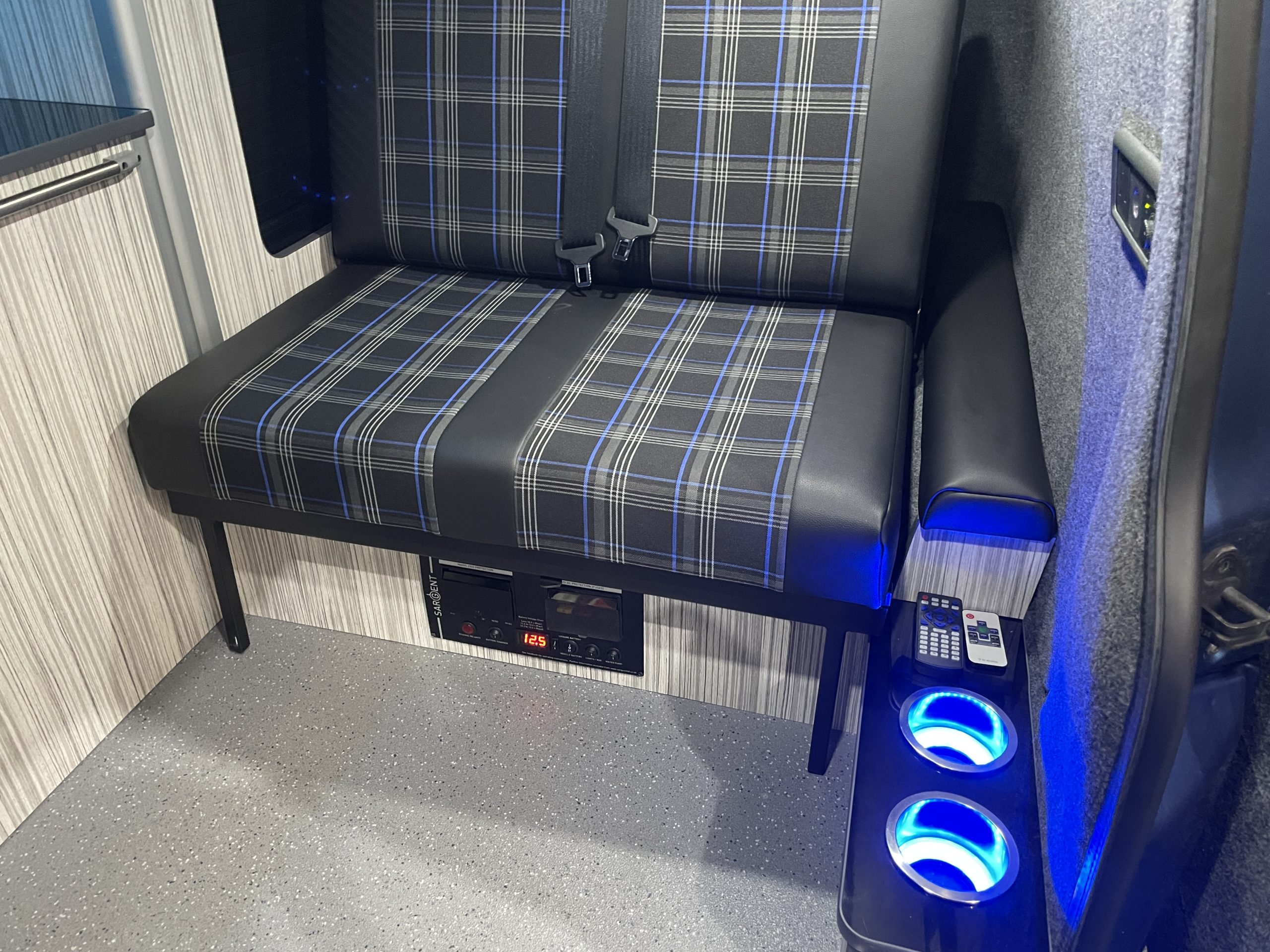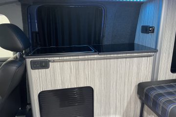 This van comes with a diesel night heater which is plumbed into the main fuel tank. It has one gas hob and sink with cold water tap which offers a 15 L tank. There is a gas locker that can fit a 907 bottle. Thereβs an Under counter dometic Compressor fridge. One wardrobe with top shelf with a lower compartment accessible through the back. There is a wide rock βnβ roll bed that sleeps too comfortably which also has two seatbelts. It has a split charger relay solar panel and electric hook up. With full LED lighting all round. There is two free pin plugs to 12 V sockets and 2USB sockets. Thereβs also a TV fitted.