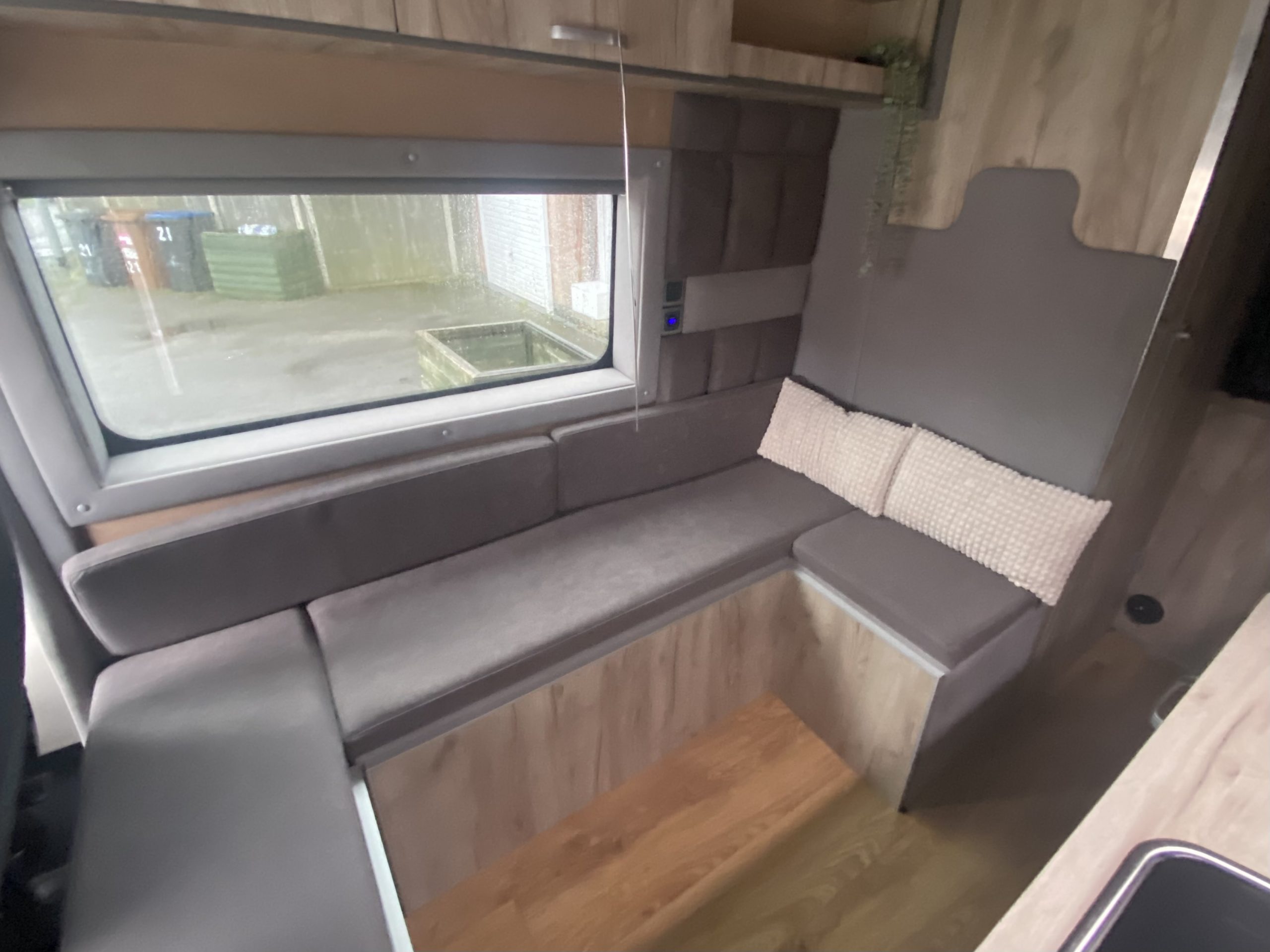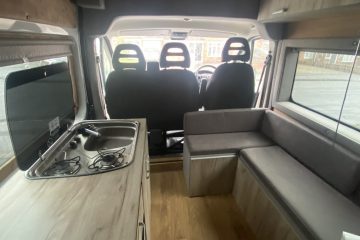 Drivers seat swivels to allow a mattress across the front seats for an extra bed.