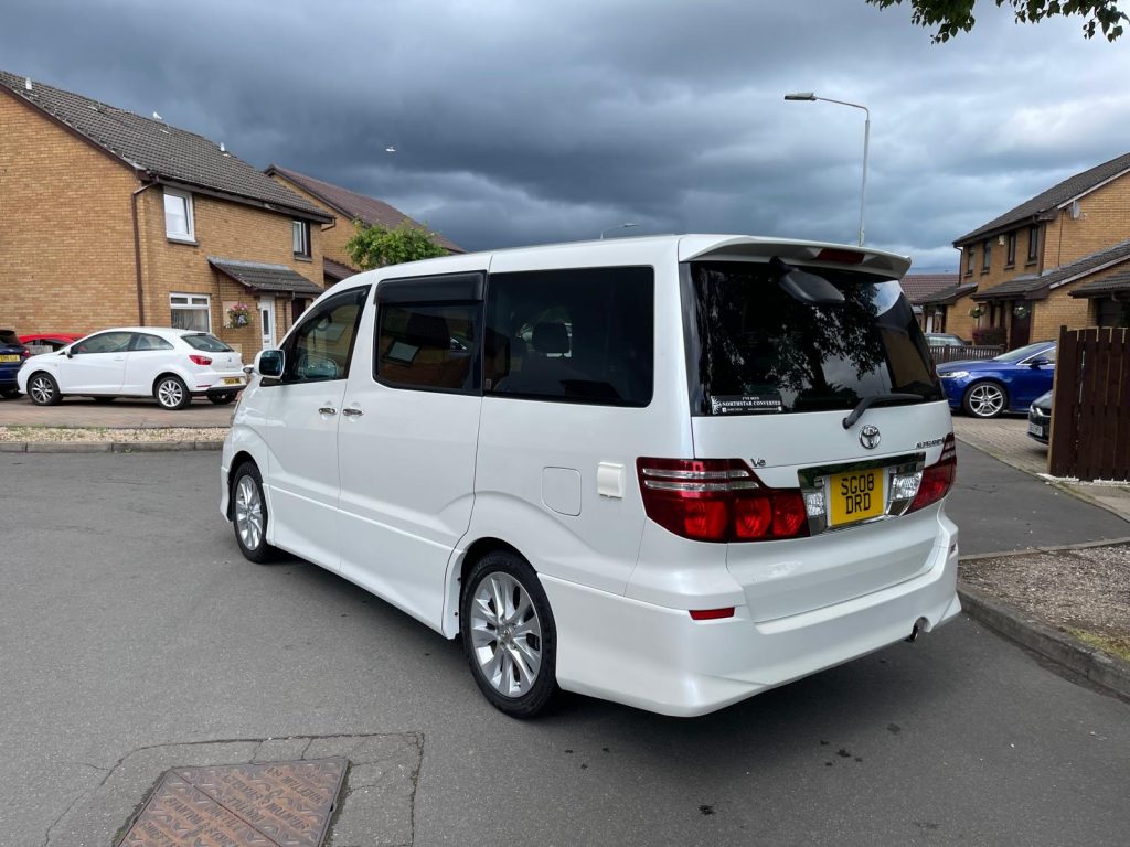2008 TOYOTA ALPHARD 2.4 PLATINUM SELECTION, PETROL, AUTOMATIC METALLIC WHITE, IMPORTED FROM JAPAN AND FITTED WITH BRAND NEW PREMIUM QUALITY REAR TWO BERTH CONVERSION IN THE LATEST CARBON/GREY COLOUR COMBINATION UPDATE EDITION WITH EXTRA OUTSIDE TABLE, 90147 MILES JUST HAD MAJOR SERVICE, MOT FROM AUGUST 2024 WITH NO ADVICE GIVEN, UNDERBODY PROTECTION BY LANOGUARD, STOPS RUST, SALT AND CORROSION, IMMACULATE UNDERNEATH WITH ALL SUSPENSION COMPONENTS ETC, LOOKING NEW, WITH BRAND NEW GRUNDIG APPLE CAR PLAY HEAD UNIT CONVERSION, CONSISTS OF DENIM BLUE/CARBON UNITS INC. TOP LOCKER AND TWO FOOT BOXES FOR UNDER SEAT STARAGE, SINK WITH 2 BURNER GAS HOB, DEDICATED GAS LOCKER WITH GAS SAFETY CERTIFICTE, WATER TAP AND ELECTIRIC PUMP, 2X12 LITRE WATER TANKS FOR FRESH AND WASTE, FIRE EXTINGUISHER, CO ALARM, TABLE RAIL, UPHOLSTERED CUSHIONS IN EASY CLEAN FAUX SUIDE, MAINS ELECTRICS AND SECONDARY LEISURE BATTERY, DOUBLE 240V SOCKET, TWIN USB AND 12 VOLT SOCKET ALONG WITH BATTERY HEALTH DISPLAY, CONSUMER UNIT WITH RCD, SPLIT CHARGE REPAY, 4 X12V LED LGHTS, ELECTRIC REMOVABLE TOP LOADING COOL BOX, PERMANENT ROOF AWNING RAIL FOR DRIVE AWAY AWNING, ORIGINAL TOYOTA ROOF BARS WITH OPTION OF ADDING ROOF BOX FOR EXTRA STORAGE, QUBE 335 POTABLE TOILET, FULL THERMAL BLINDS FOR EVERY WINDOW, TWIN ELECTRIC SLIDING PASSENGER DOORS, ELECTRIC TAILGATE, ELECTRIC WINDOWS X4, FOLDING MIRRORS, DUAL AIR CONDITIONING/CLIMATE CONTROL, REMOTE KEYS X2, OWNERS BOOK PACK, , ALLOY WEELS AND IN BEAUTIFUL CONDITION THROUGHOUT WITH 4 NEW ALL SEASON TYRES, SUITABLE FOR DRIVING ON SNOW, EFFORTLESS DRIVE WITH THE USUAL TOYOTA RELIABILITY