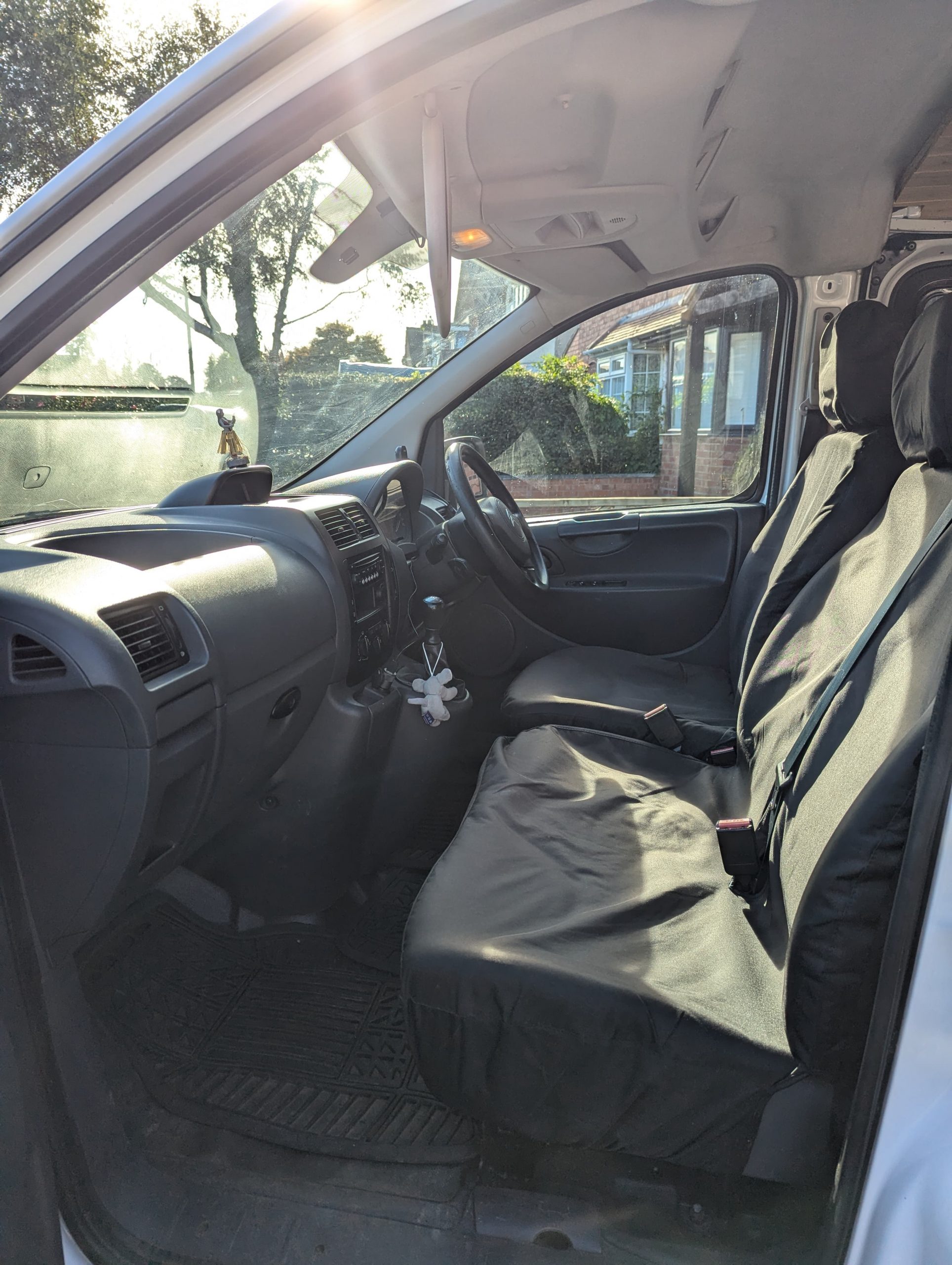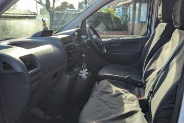 A set of custom-fitted seat covers has been installed on the cab seats, ensuring the seats are protected from muddy paws. There’s also a fitted front window insulation cover that helps regulate the temperature inside the van, keeping it cool in summer and warm in winter. Additionally, I’m including two ratchet straps for the roof rack, making it easy to secure any extra gear for your adventures.
