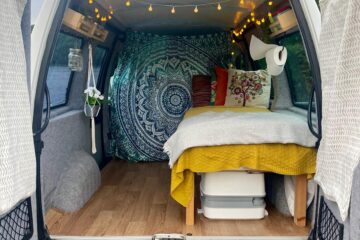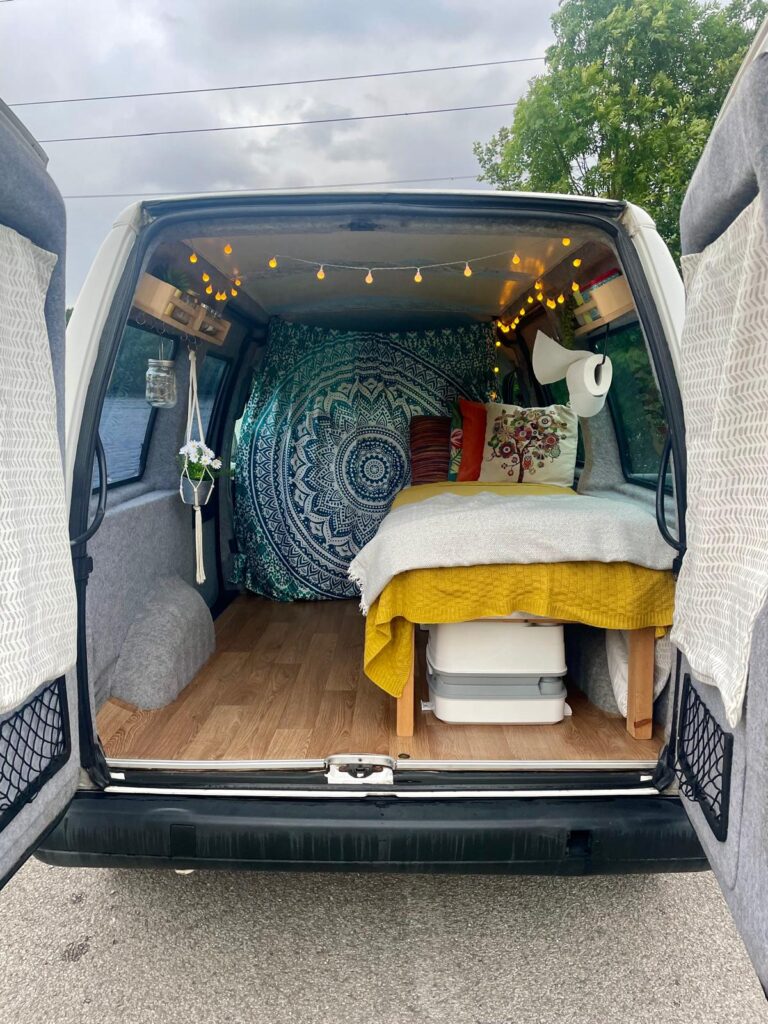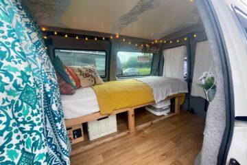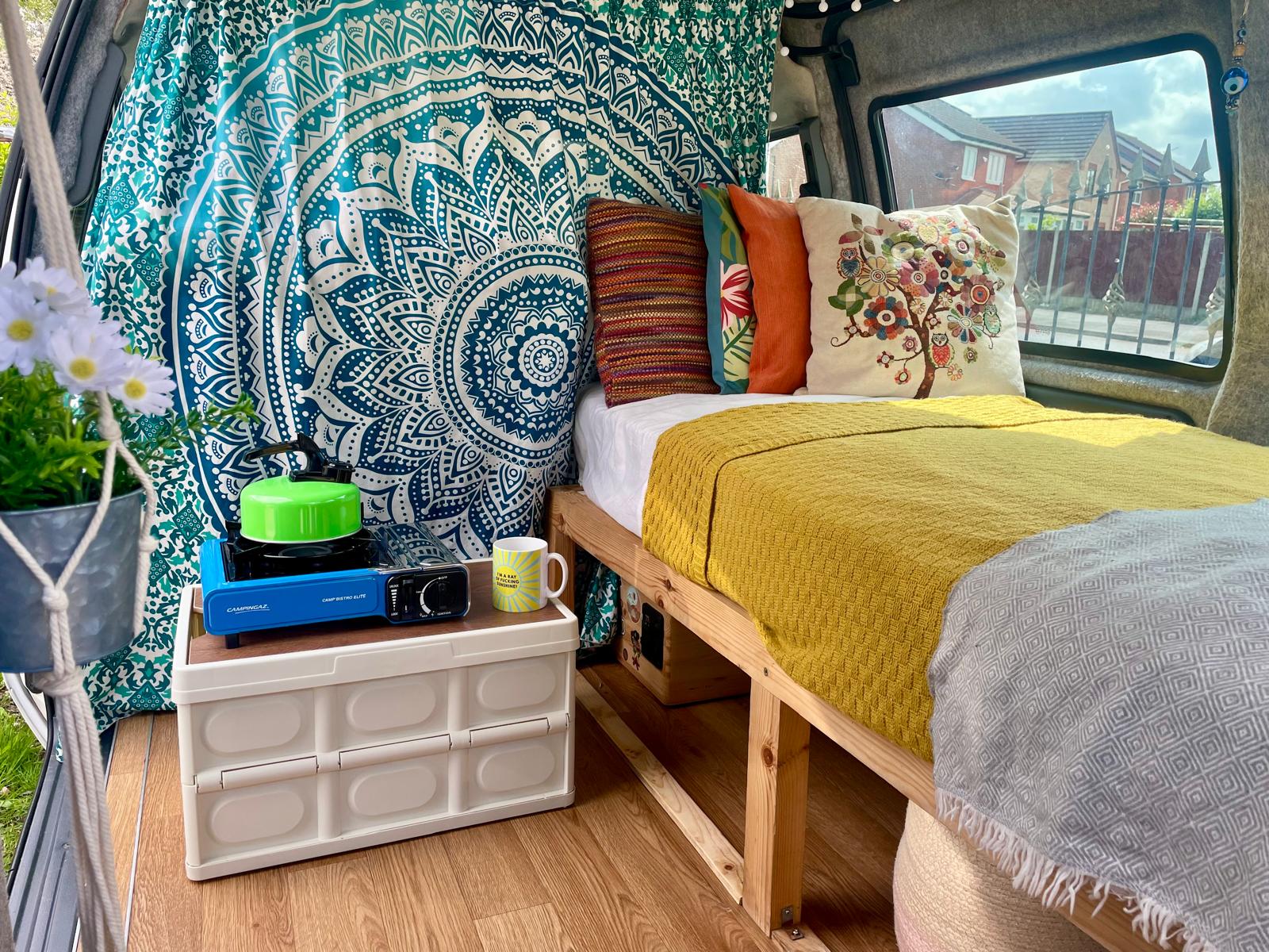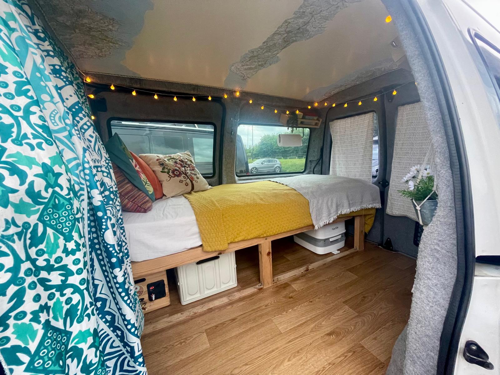 This van was originally set up for solo travelling so has a single bed, but you can sleep two people with the second person on one of the foam mattresses on the floor (I did the NC500 in Scotland with my partner this way).