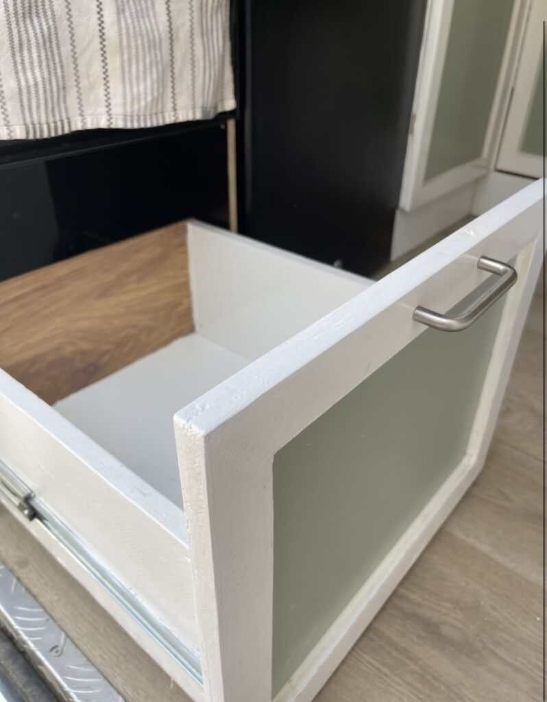 Over head storage space, overhead cabinets above the bed and kitchen area with soft close hinges, storage in the double bench seat. Lots of storage beneath the kitchen in the kitchen cabinets.