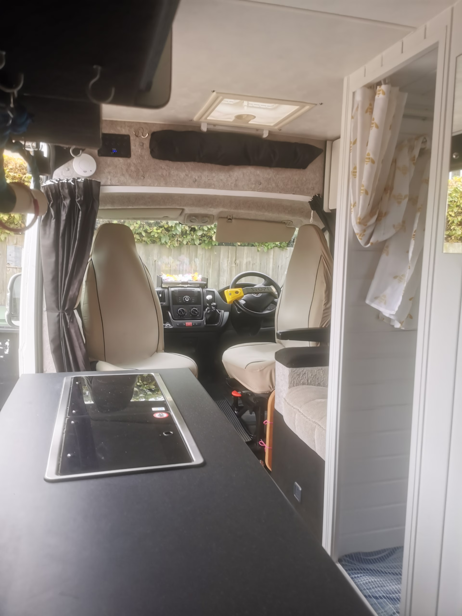 • 3 x tinted windows in living area with curtains and one on sliding door