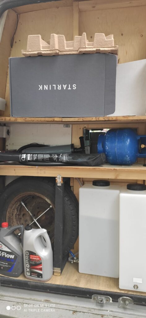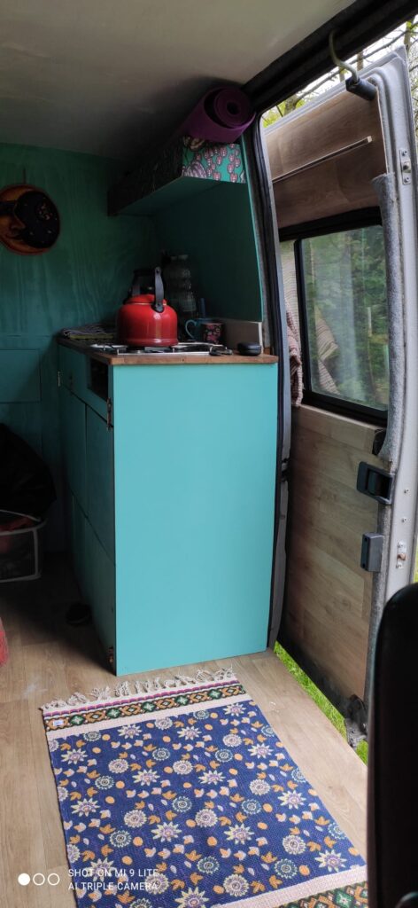 My van is much loved but I’m selling as I’m moving abroad for work. I bought her in March this year and have spent much of the time since then travelling in her and/or making improvements. She comes with a gas hob and grill (I’ve not used the grill), a memory foam mattress big enough (although would be very cosy!) for two and spacious for one. There is a gas bottle and a spare in the back. I’ve had a new inverter fitted since I’ve had her to ensure that it can run the Starlink (also included – worth nearly £500 for the kit). The Starlink is a little juice heavy but I’ve been able to get around 4-5 hours a day out of it just on solar. There is also an Outdoor Revolution Voyager Air drive away awning included in the price (around £300), which is walk in height, room sized and easy to put up. It can also be set up as a separate tent. Water is pumped to the sink via a foot pump and there is a portable toilet in the ‘loo’ area of the van. There’s a diesel heater which I’ve not used. There are light strips over the sleeping area and the kitchen, a spot light by the swivel seat, an outside light and a light in the ‘loo’. There is a car lighter plug also and a usb port (which is currently not working – I’ve just been using a lighter adapter). There is a fridge which runs off the 12V and keeps very cold. There is also a reverse cam which runs off the side lights. I’m also happy to include all the bits like cooking pans, plates, cutlery, etc., if needed.
