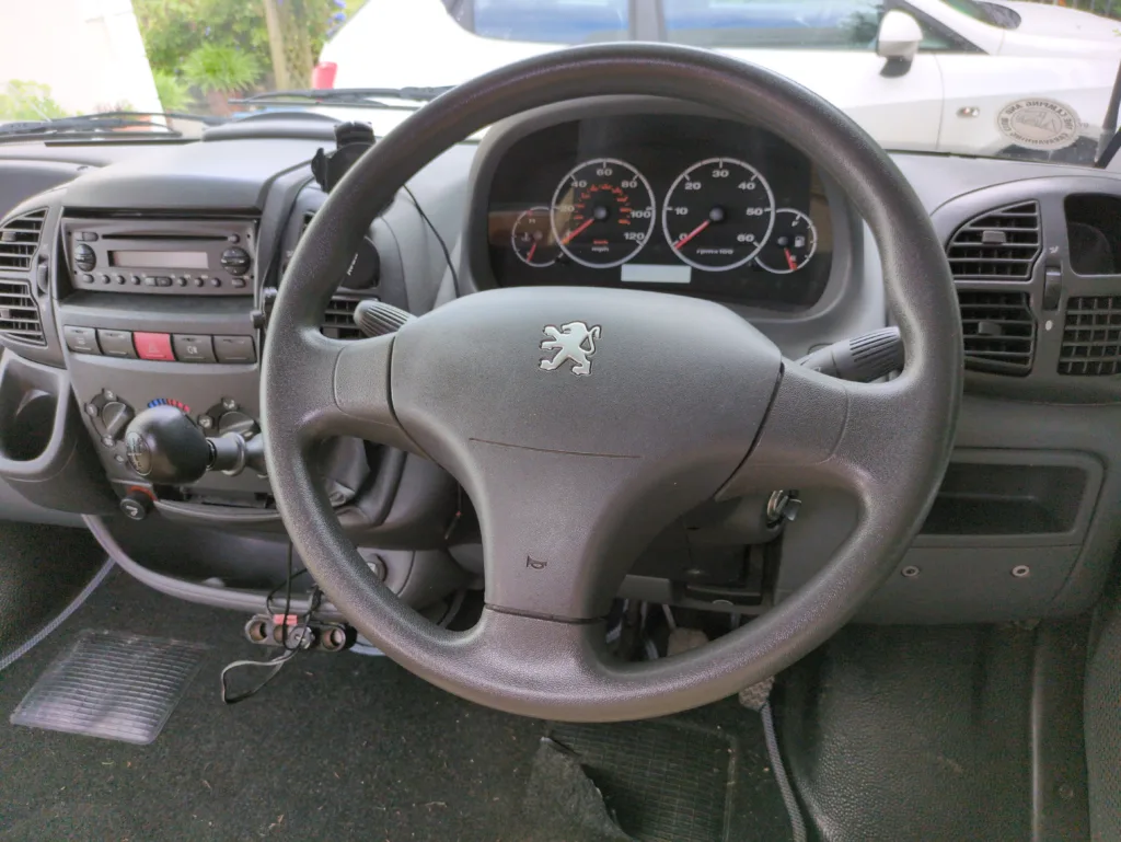 5 speed gearbox. It has a Peugeot Boxer 2.0l HDi engine and will cruise at 70mph but slower (50mph) on the hills of the A30.