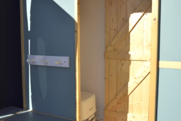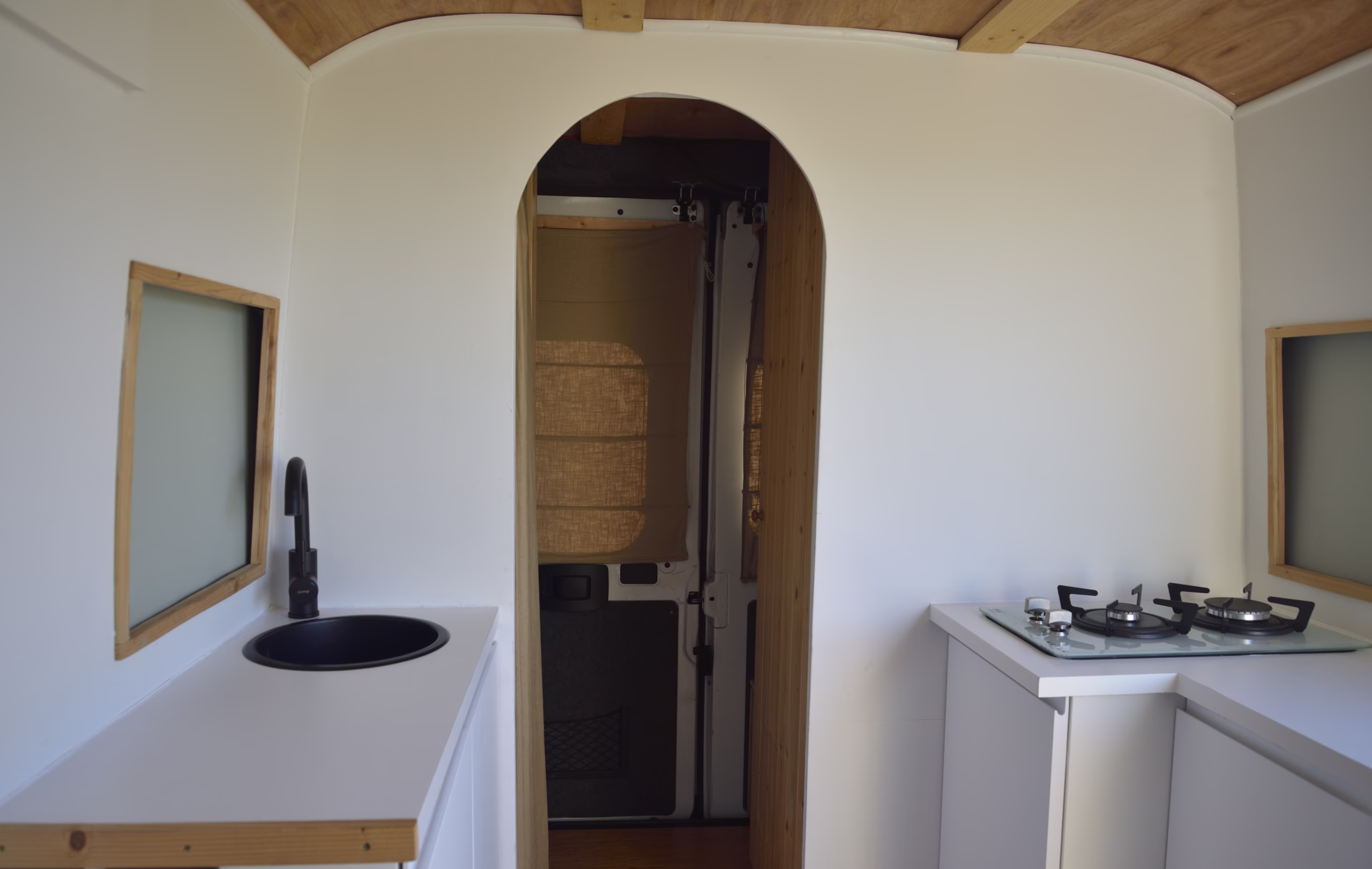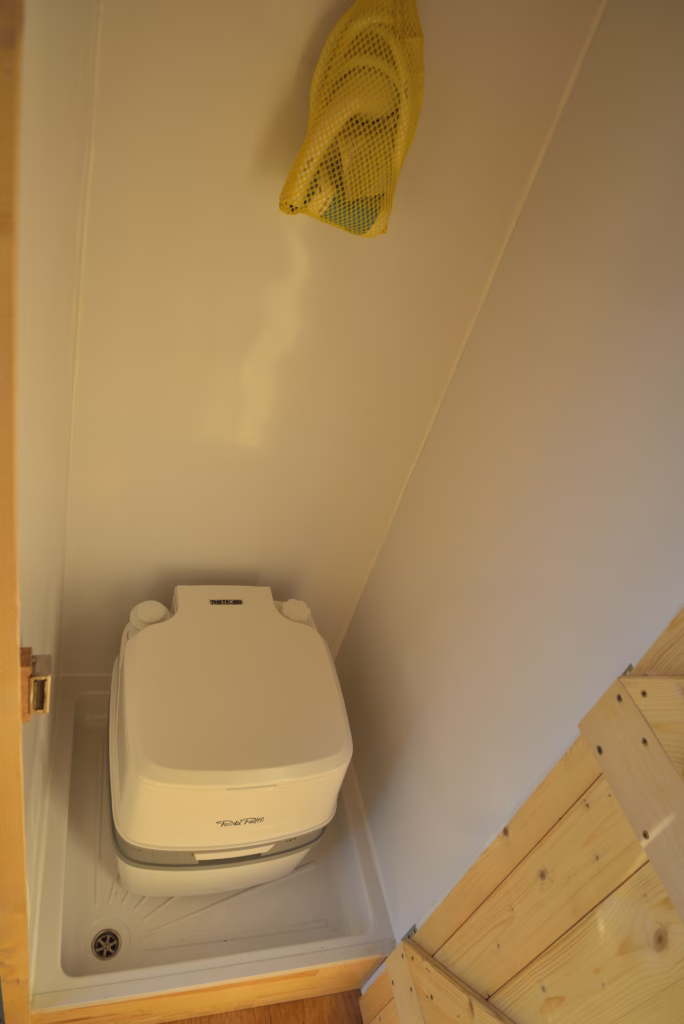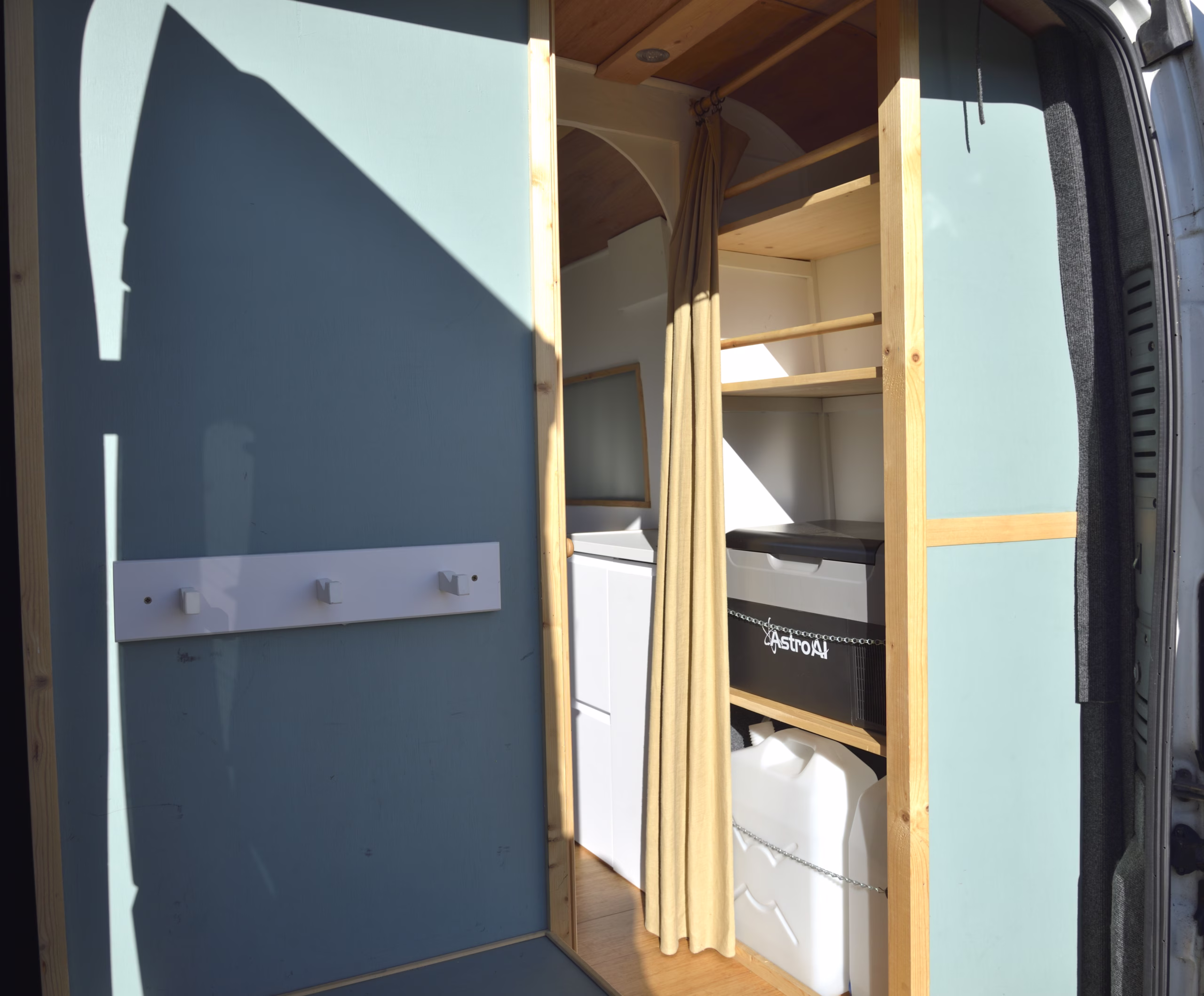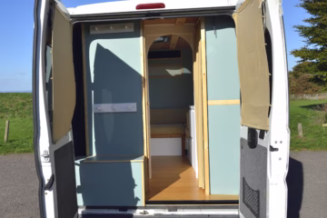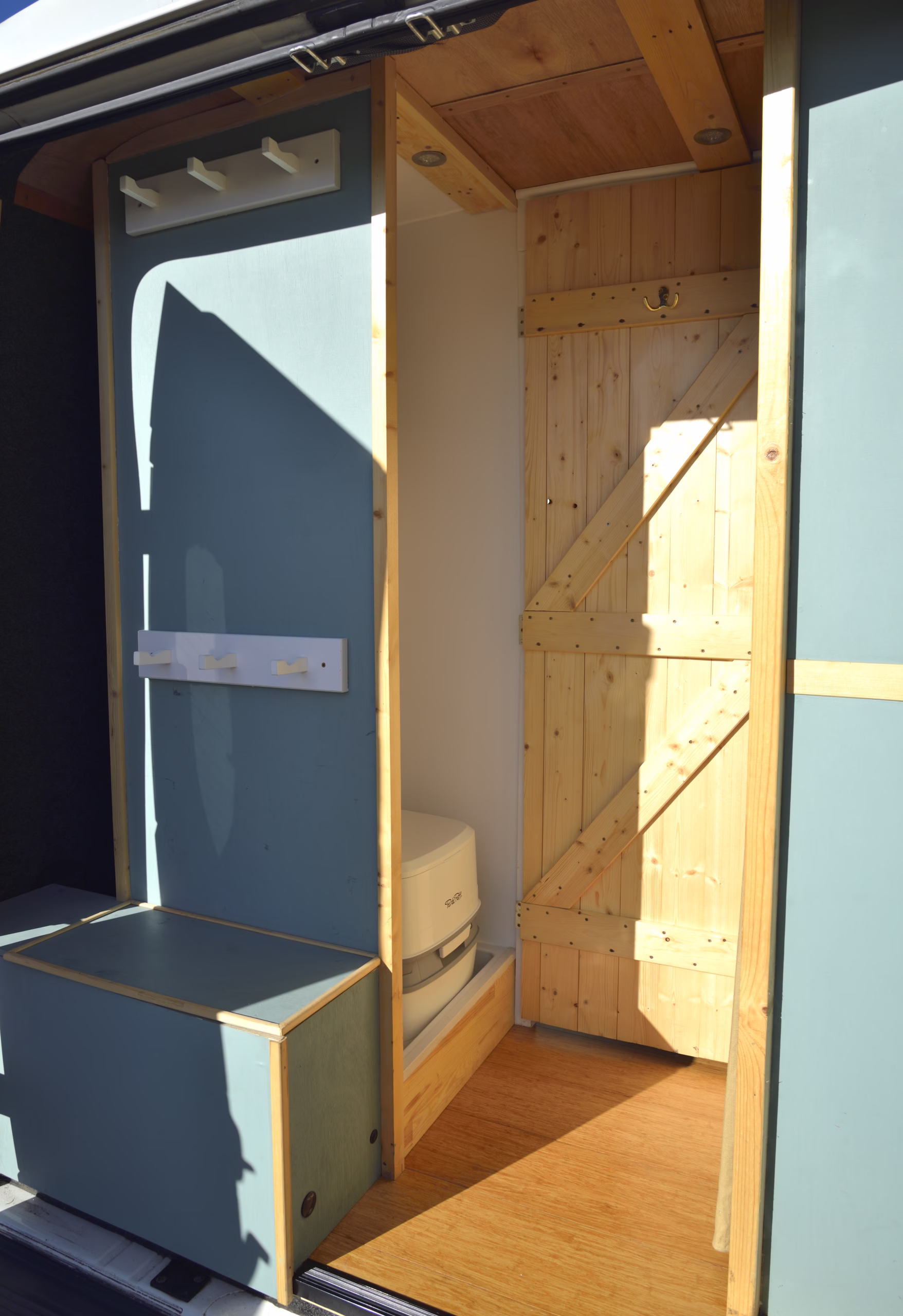 A cleverly positioned door closes off the cubicle tidily when not in use but provides privacy to the rear of the van when opened