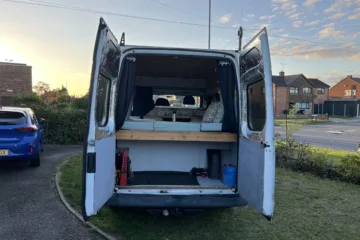 – 04/2025: Windows fitted in rear doors, fridge freezer installed, electrics professionally checked