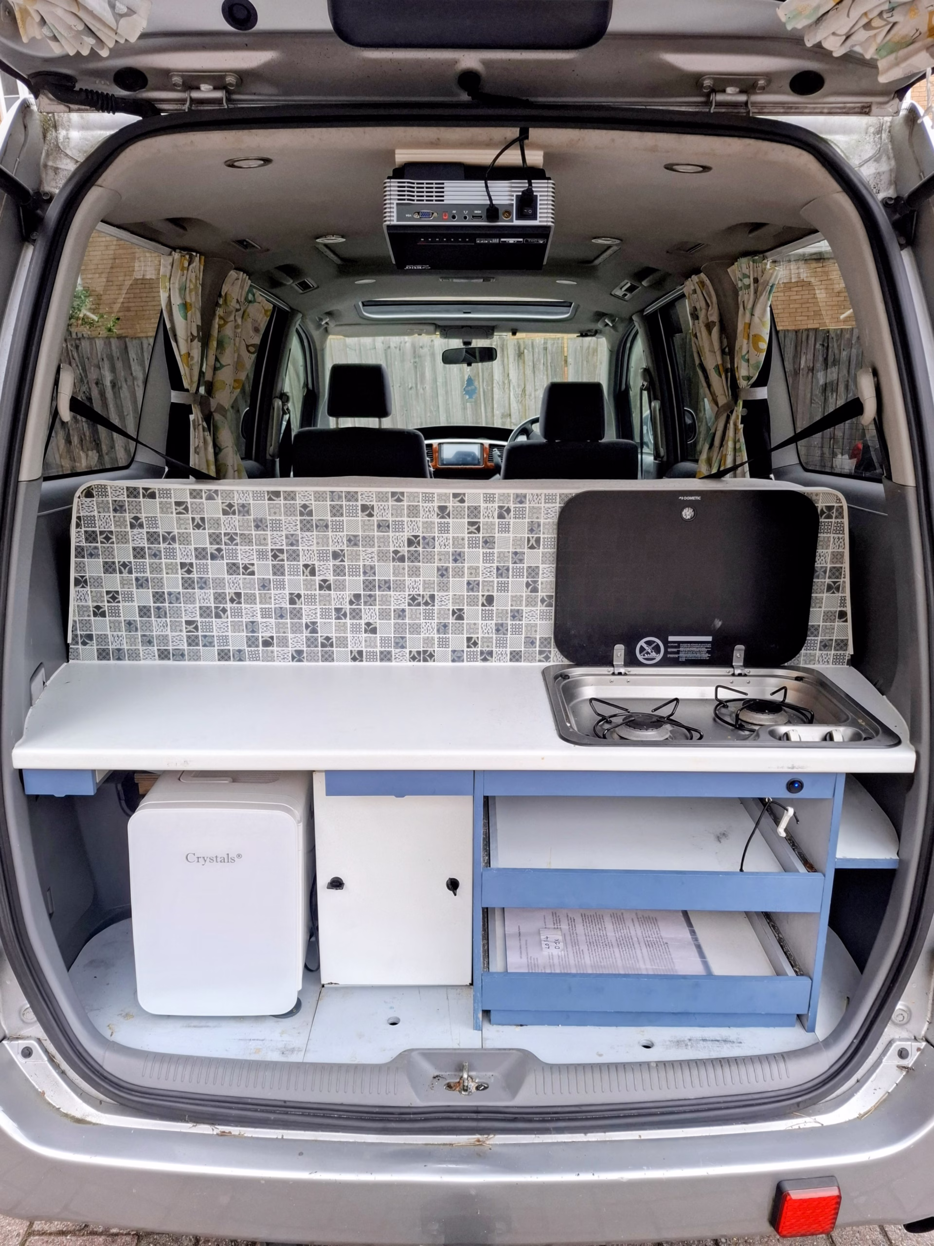Wood-lined interior and storage under 2 x benches in the rear and boot converted to kitchenette
