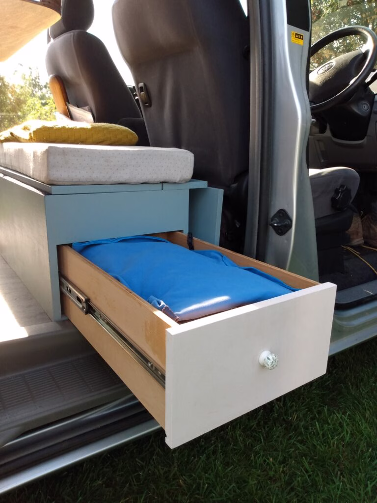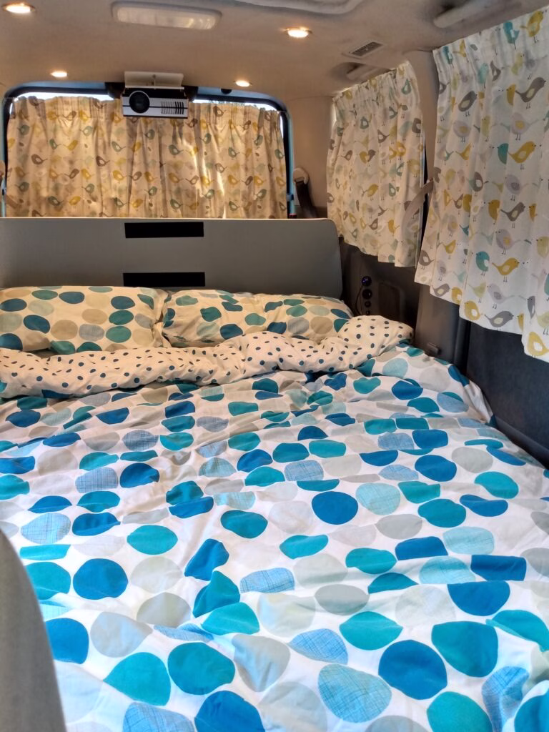 Rear of van converts to double bed width – 135cm wide, 188cm length. Ideal for 2 adults.