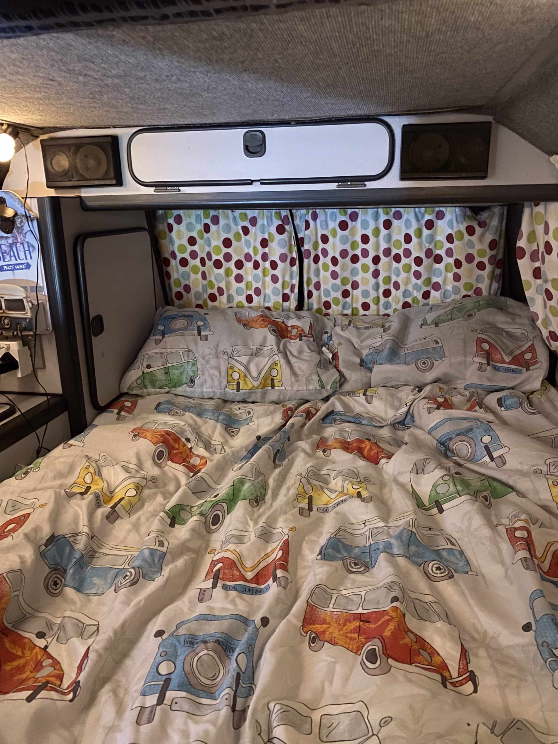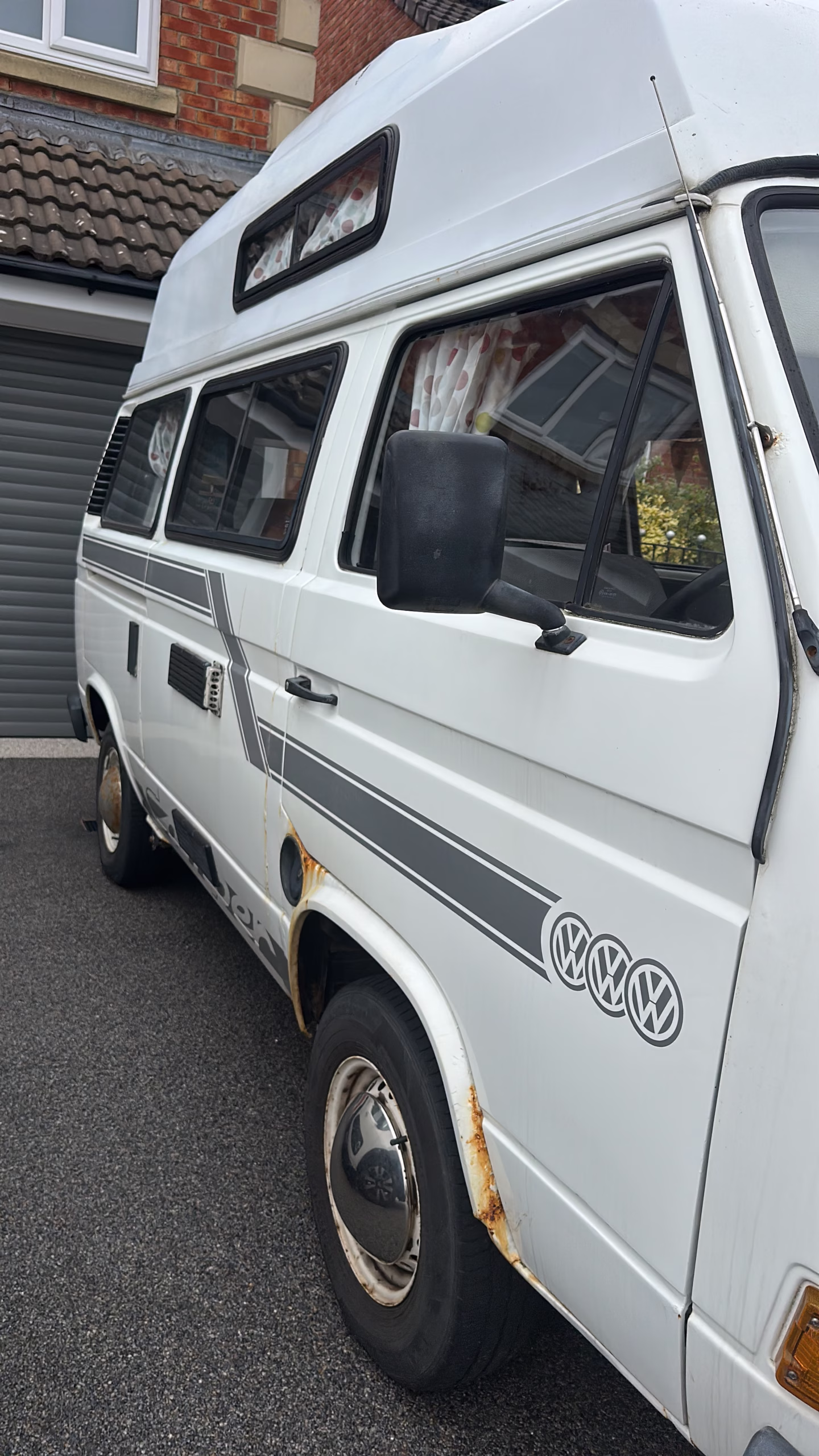 Outside rust and bumps due to age. Extras include portable loo and toilet tent. There is an awning that I bought with van but not great condition.