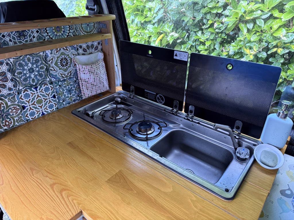 – Two-ring gas hob, with refillable gas bottle fitted.