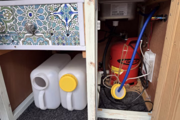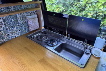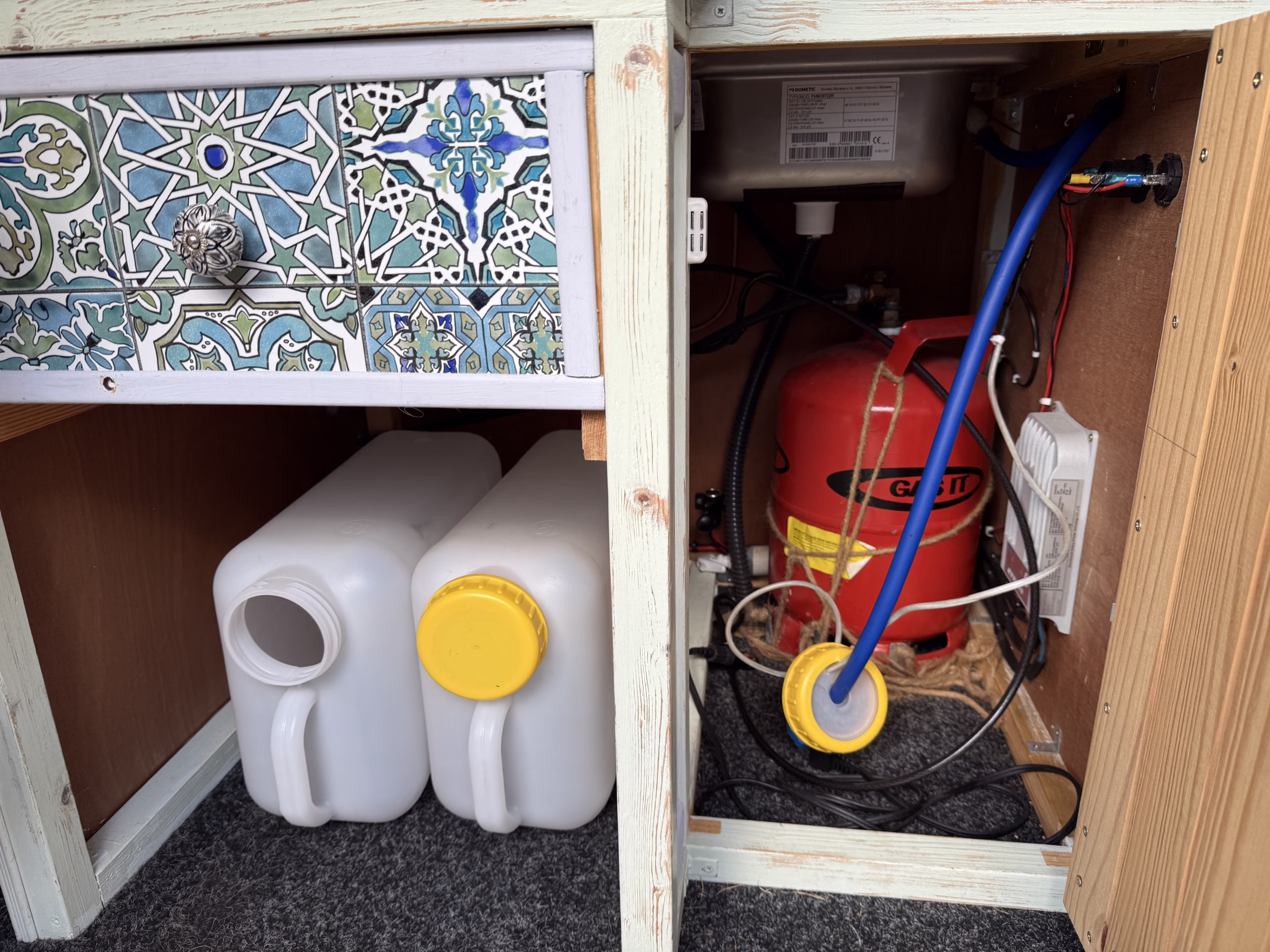 – Under-kitchen 12V socket to fit a camping fridge (fridge not included).