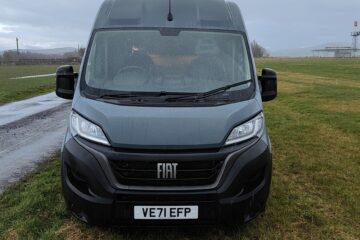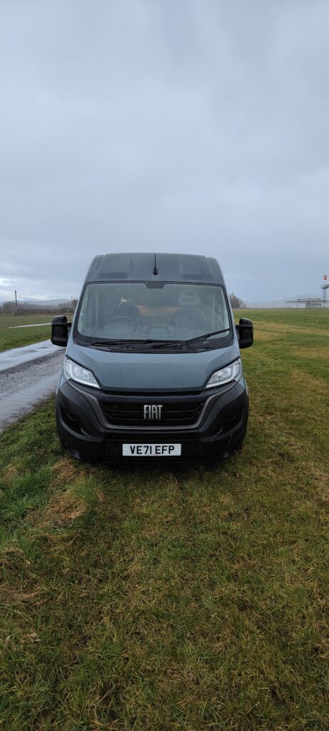 Its a 2022 Fiat Ducato Professional in Lanzarote Grey with the 2022 updated Ducato cab and single passengers swivel seat