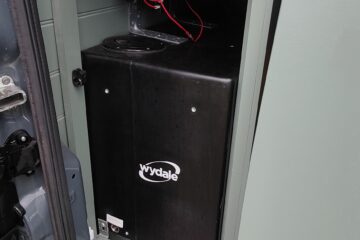 • Black metal gas box – vented outside the van