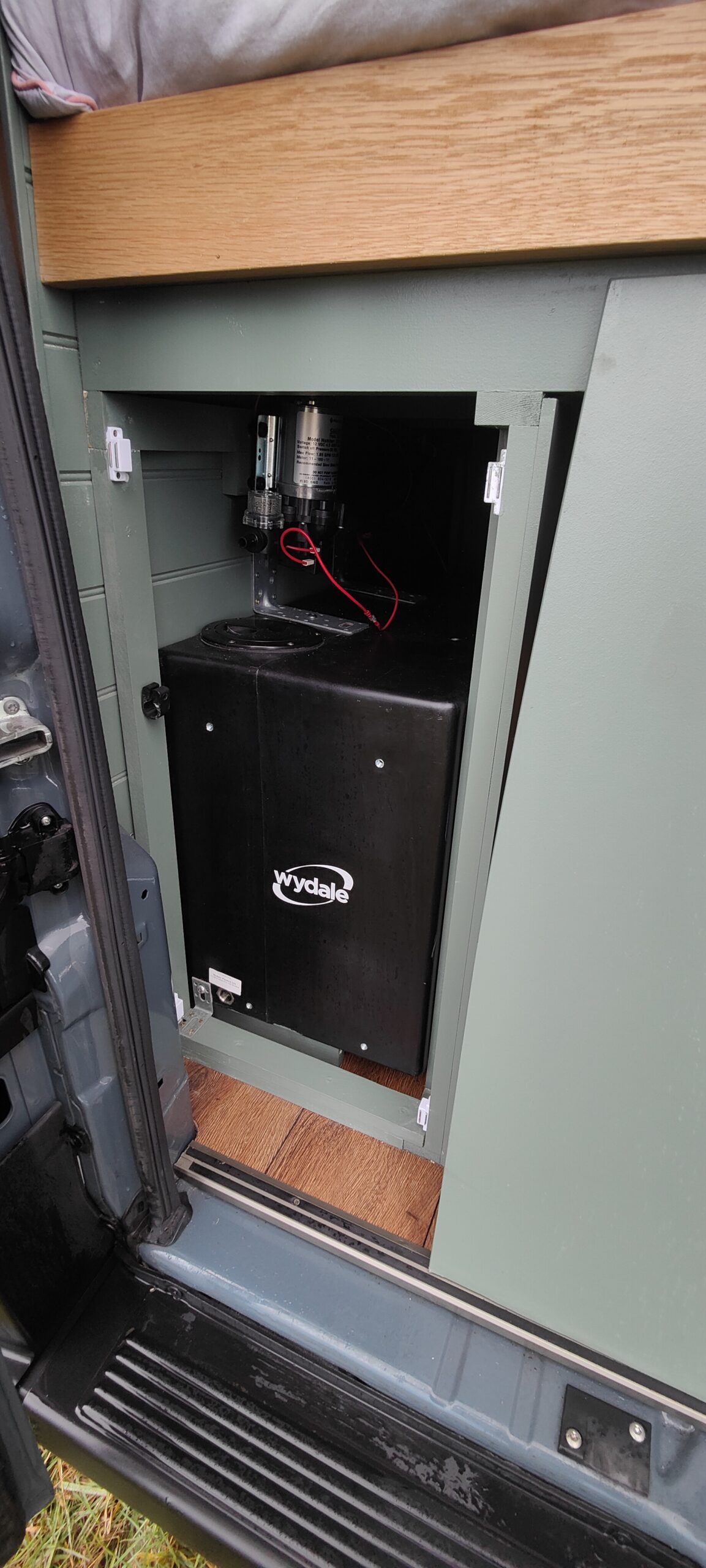 • 57 litre over arch water tank with Shurflo pump