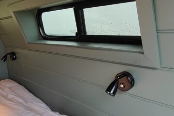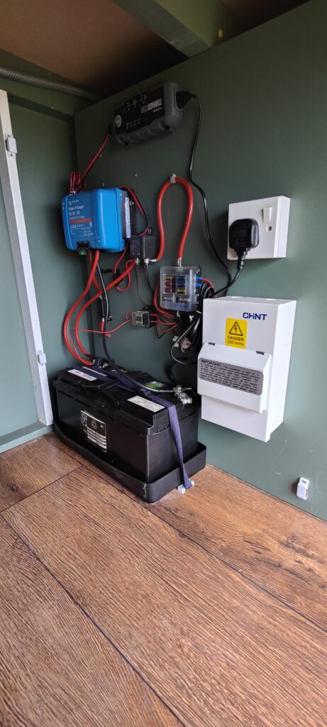 The electrics are powered by a 120 amp cycle leisure battery or through 240v mains hookup.