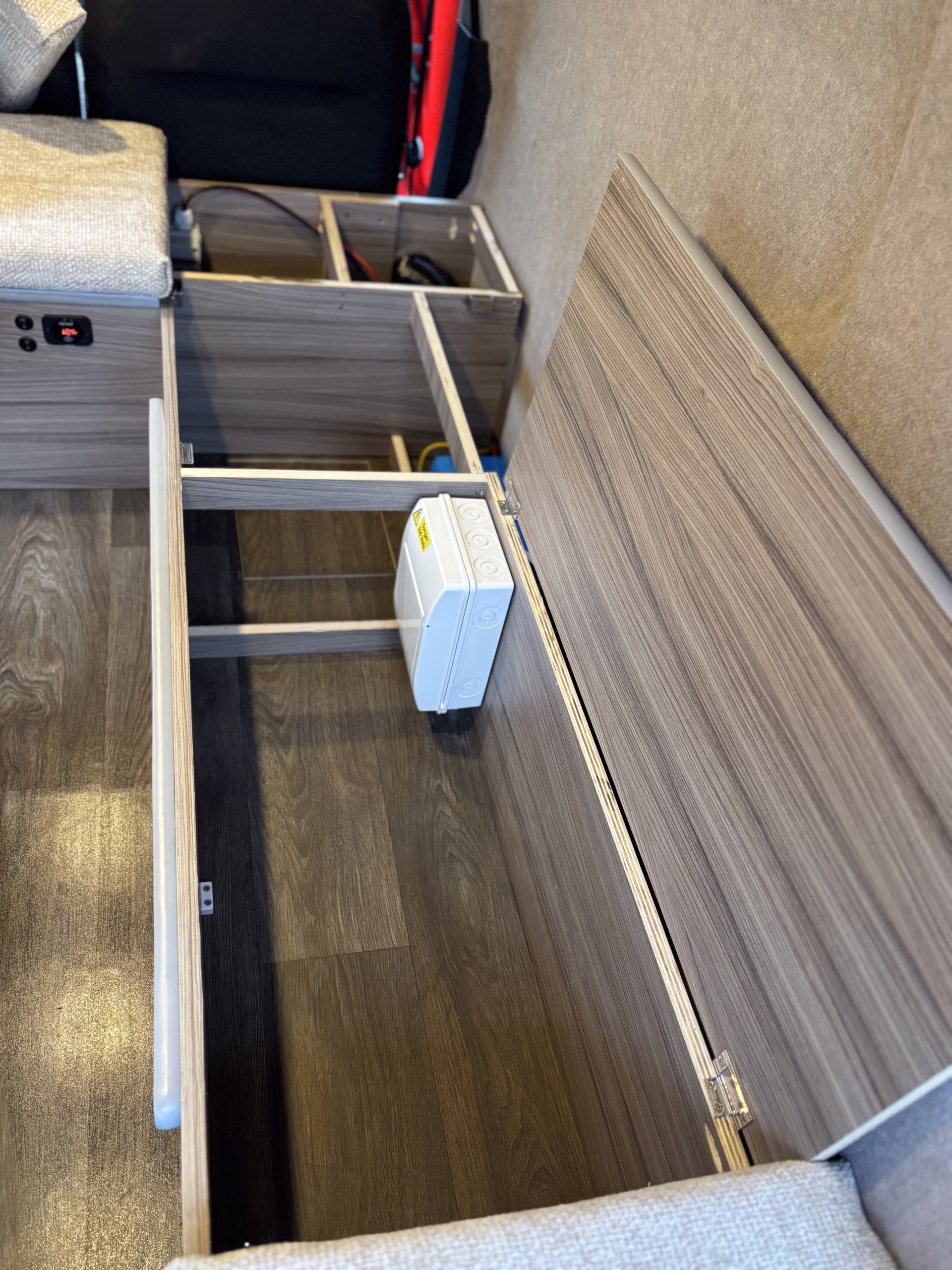 .Storage under bed/additional room made in void between floor and van base to store valuable items.