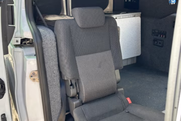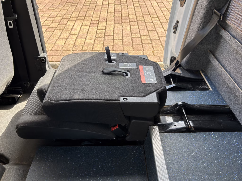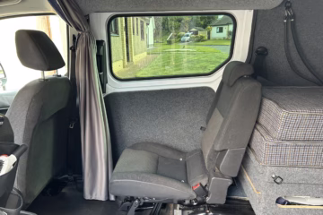 This is a crew van which has been converted into a micro camper. It has three belted seats, one of which folds down to fit underneath the bed.