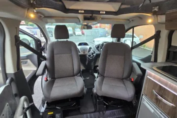 Tourneo standard spec, Air-con, front & rear parking sensors, PAS, electric folding mirrors, Bluetooth, Cruise control, heated screen, single cab seats heated with armrests, glazed tailgate with rear wash wipe. Seat Belts: 5 x 3-point, Power Steering: Front Fog Lights: Tax Class: Motorcaravan: Twin Airbags: Stereo/CD: Height Adjustable Steering Wheel: Cab to rear access: ABS: Electric Windows: Rear Tinted Glass: Immobiliser:
