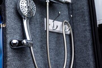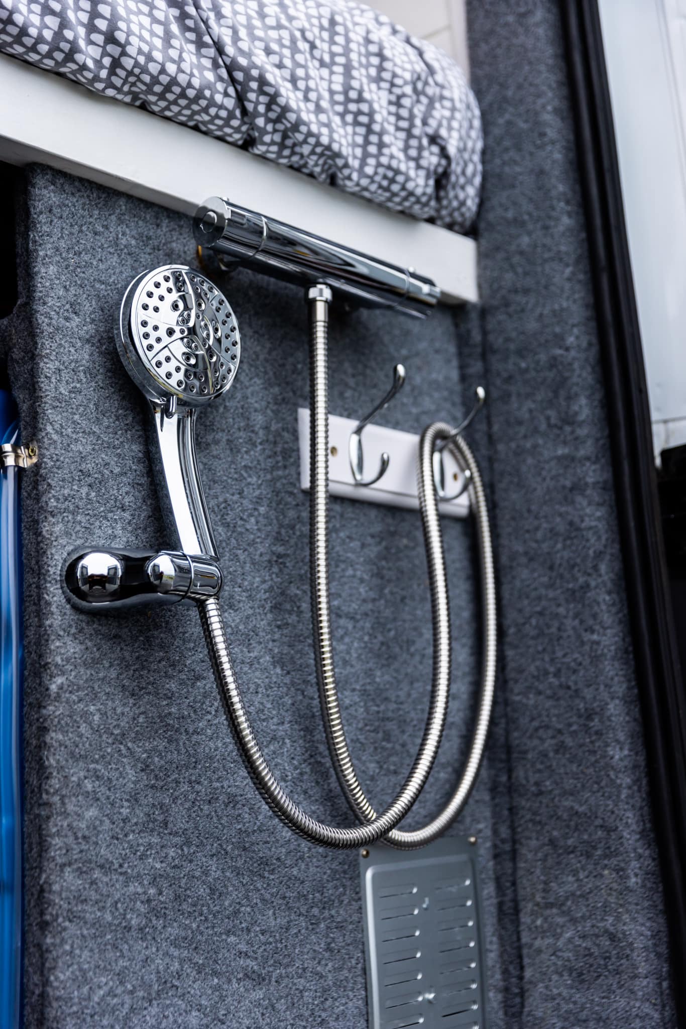 – High pressure ‘outdoor’ shower with flow and mixer taps plus shower tent