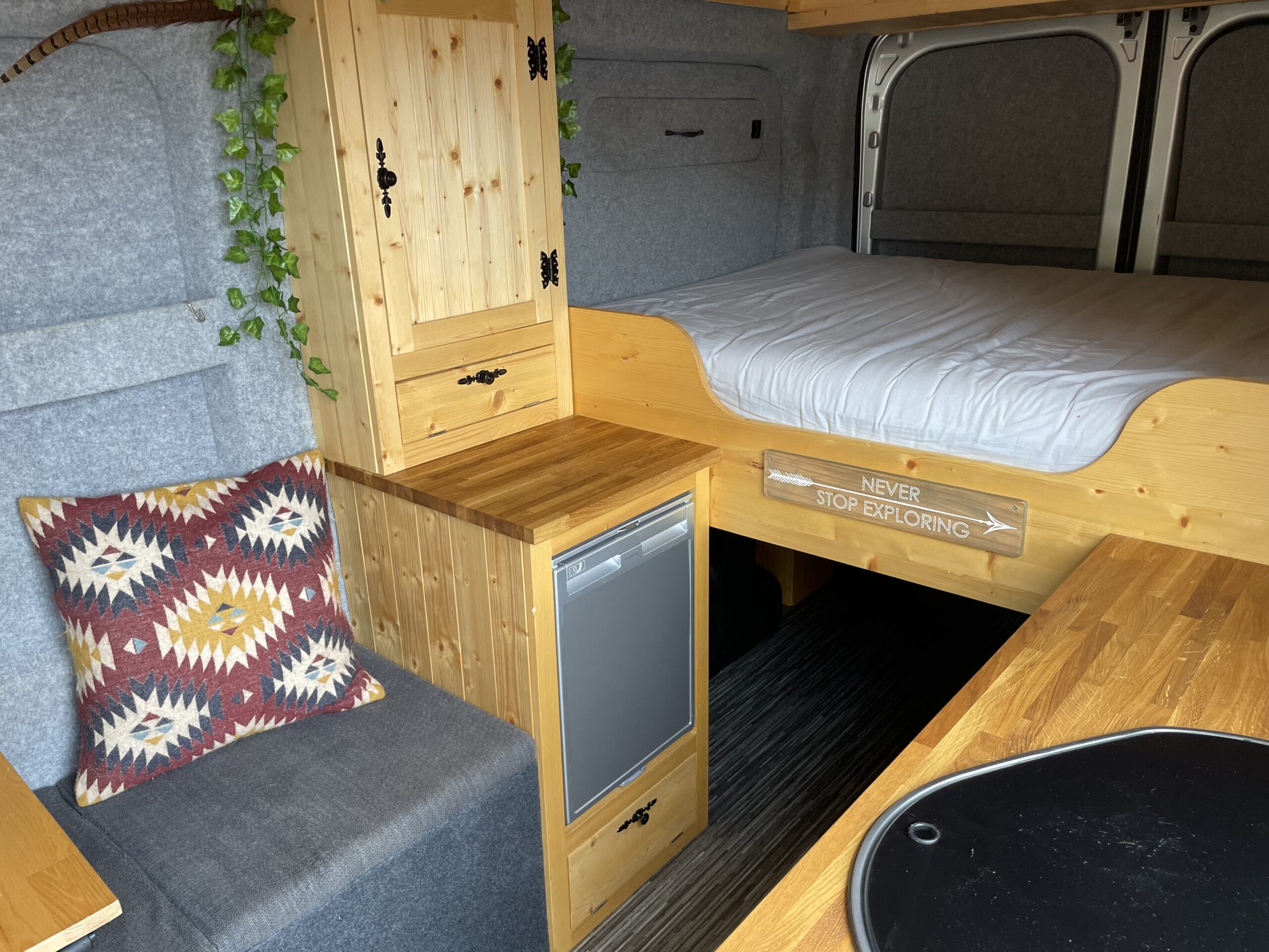 This is a lovely spacious practical van that’s only ever been used as a campervan. I’ve had many great adventures in it and never needed to use electric hook up!
