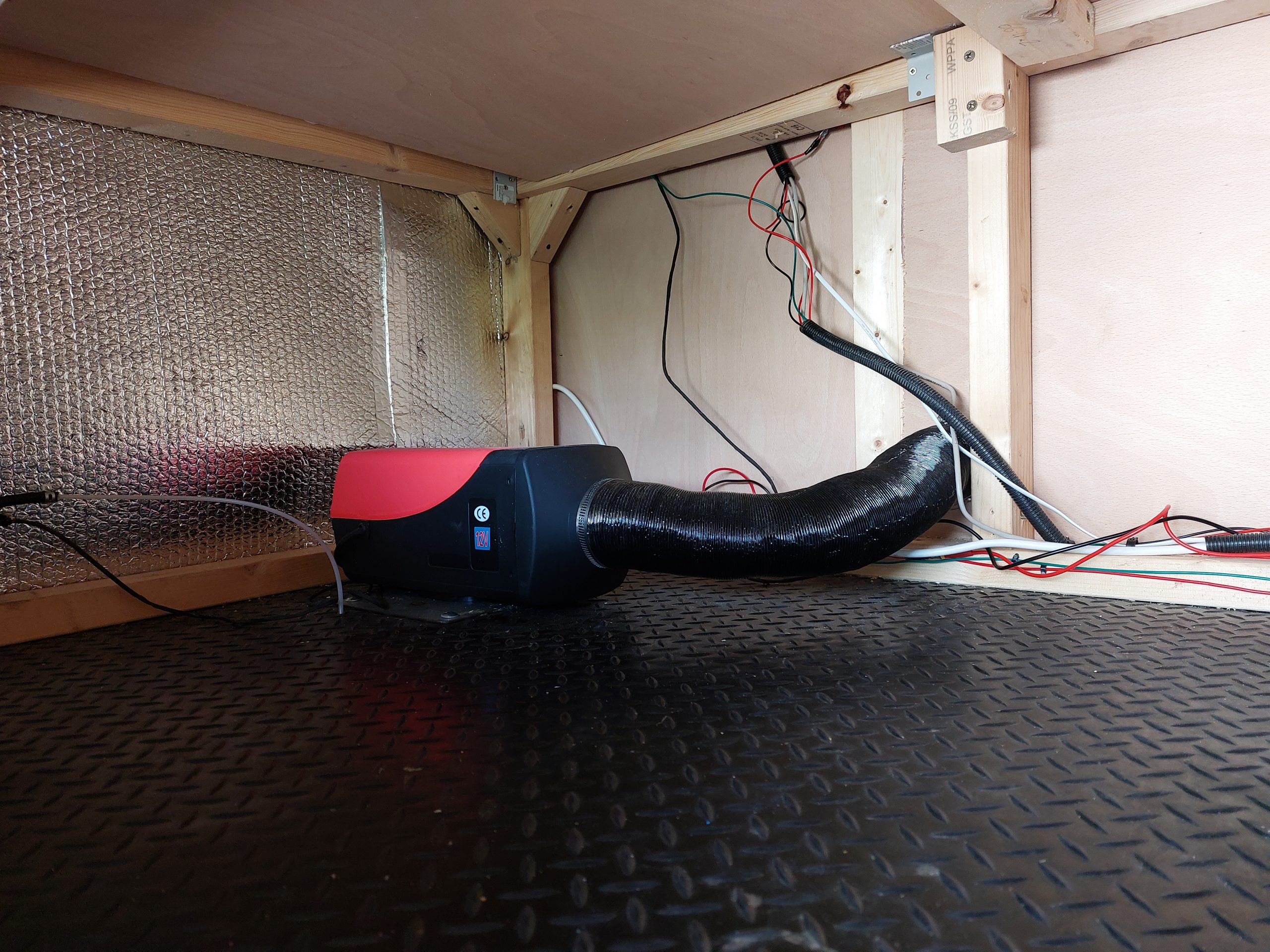 Additional storage for personal items and clothing above drivers seat and unde bench seat to rear or belted seats. Diesel electric heater that runs off the 12V system with remote control.