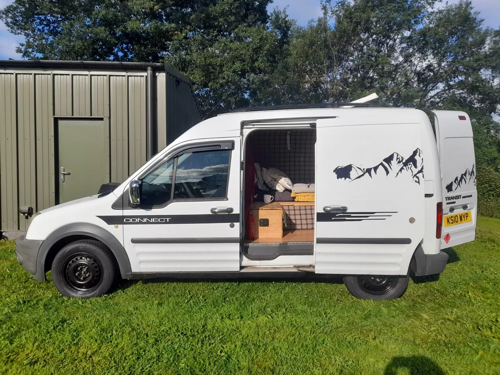 I am selling my Ford Transit Connect LWB microcamper with a full year MOT and low milage. It is a lovely little van and served me well while I lived in the city, but now I live on a farm I’ve no need for it.