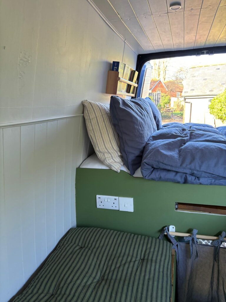The bed itself is a double size, but only 165cm in length head to toe, meaning to sleep a reposition is required. We have used foam blocks to make a comfortable bed space.