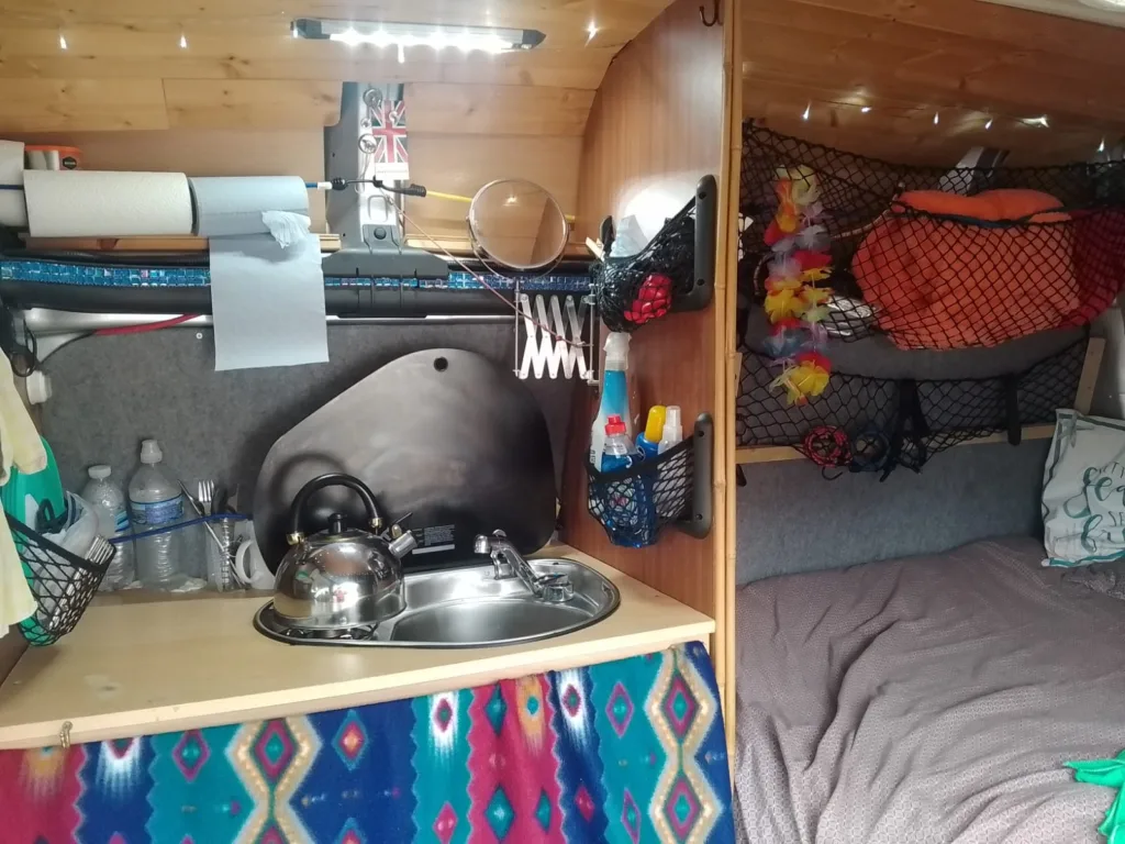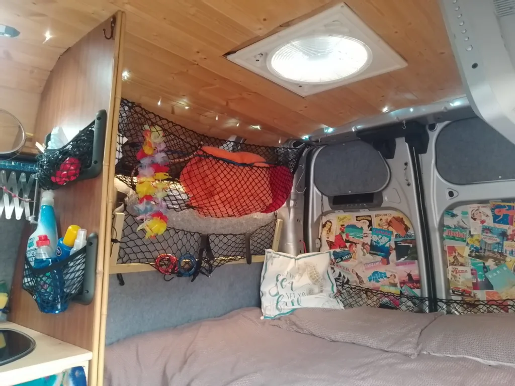 Rear fixed double bed. Plenty of storage underneath. Sink with burner. 2 10ltr water butts. Diesel heater. Sink Grey waste butt. Electric 2 way roof fan. 150 watt solar panel. TV on swivel arm. All electrics professionally fitted. USB sockets. Strip lighting. 200 amp leisure battery. Privacy glass in sliding door. Tow bar fitted.
